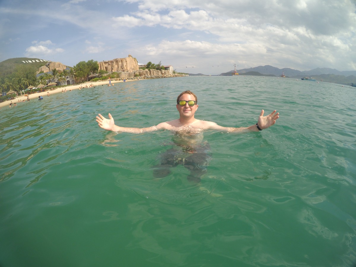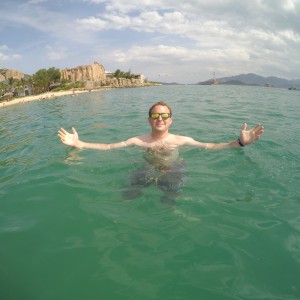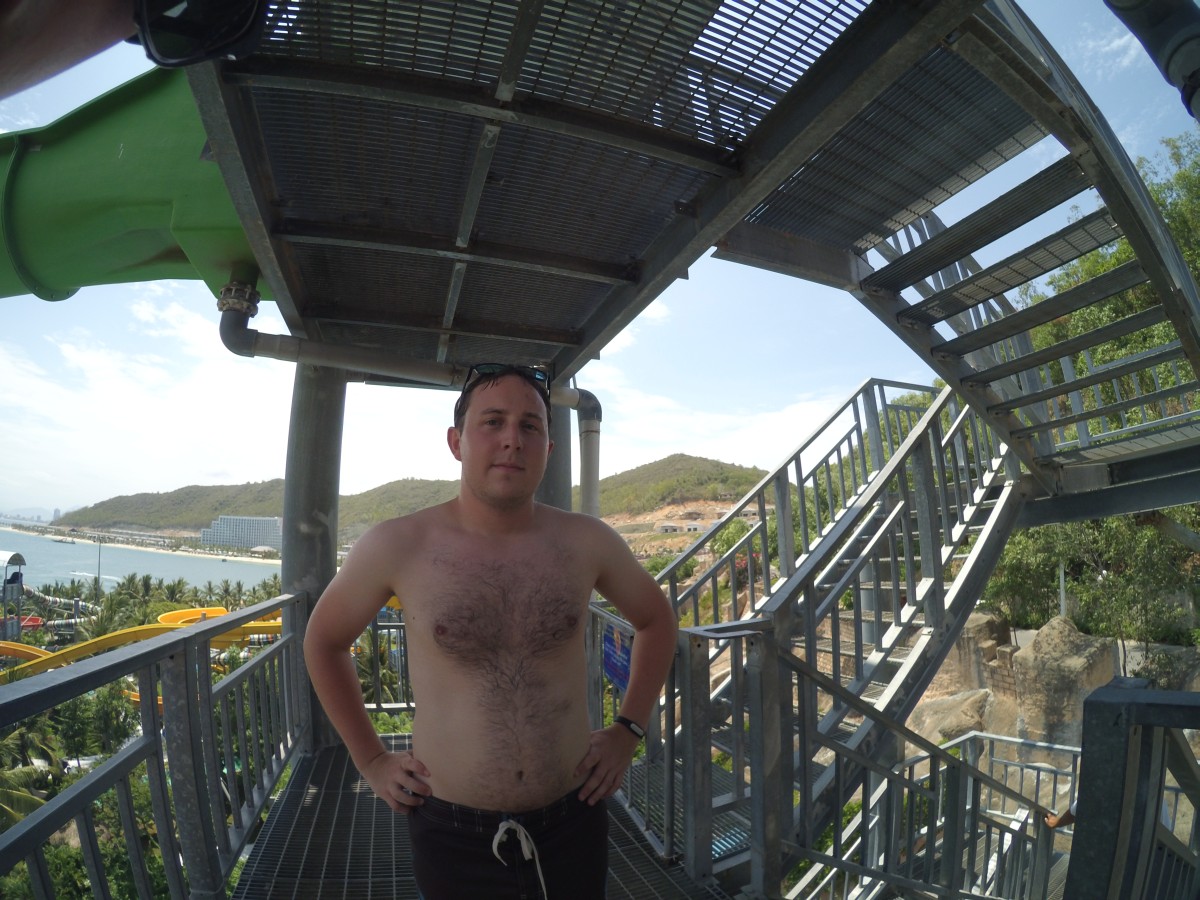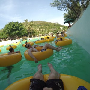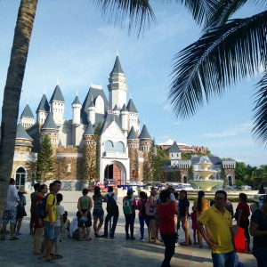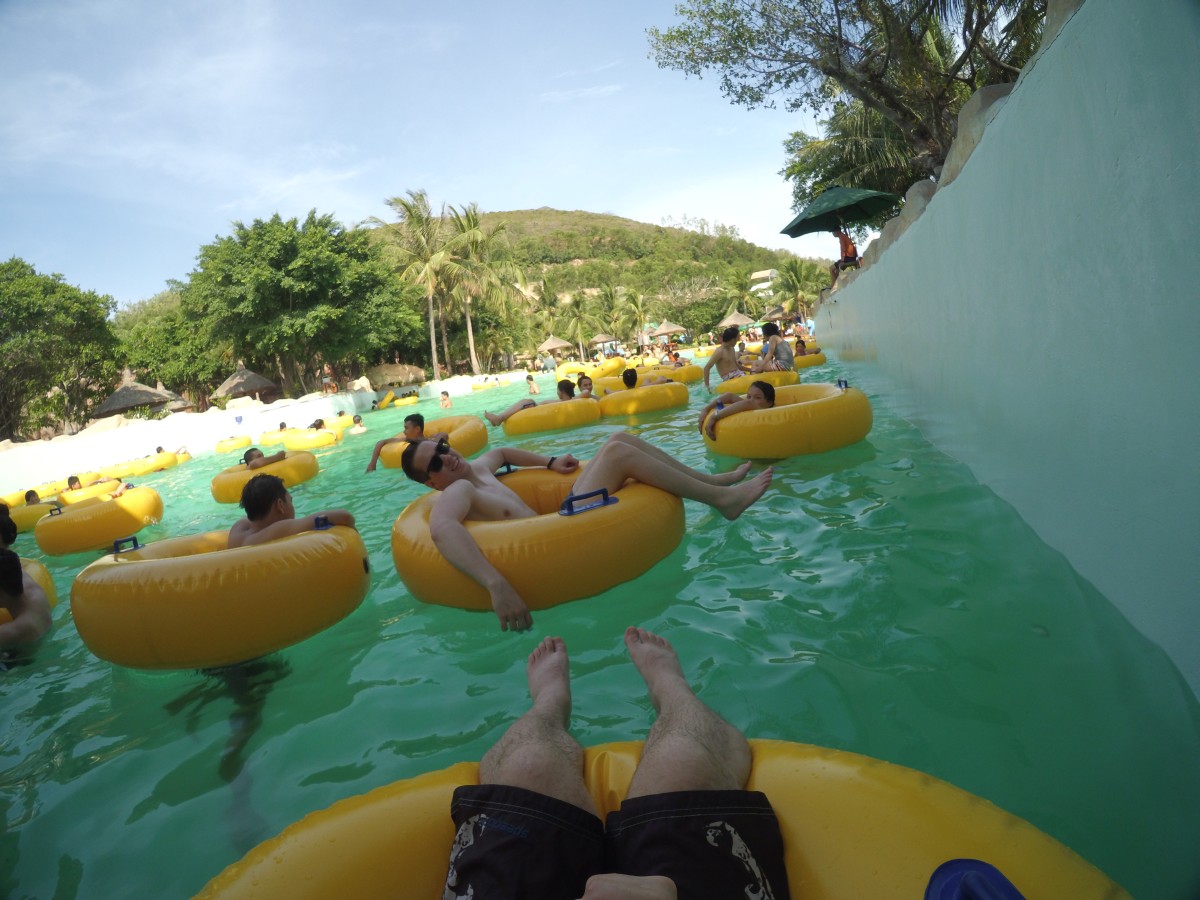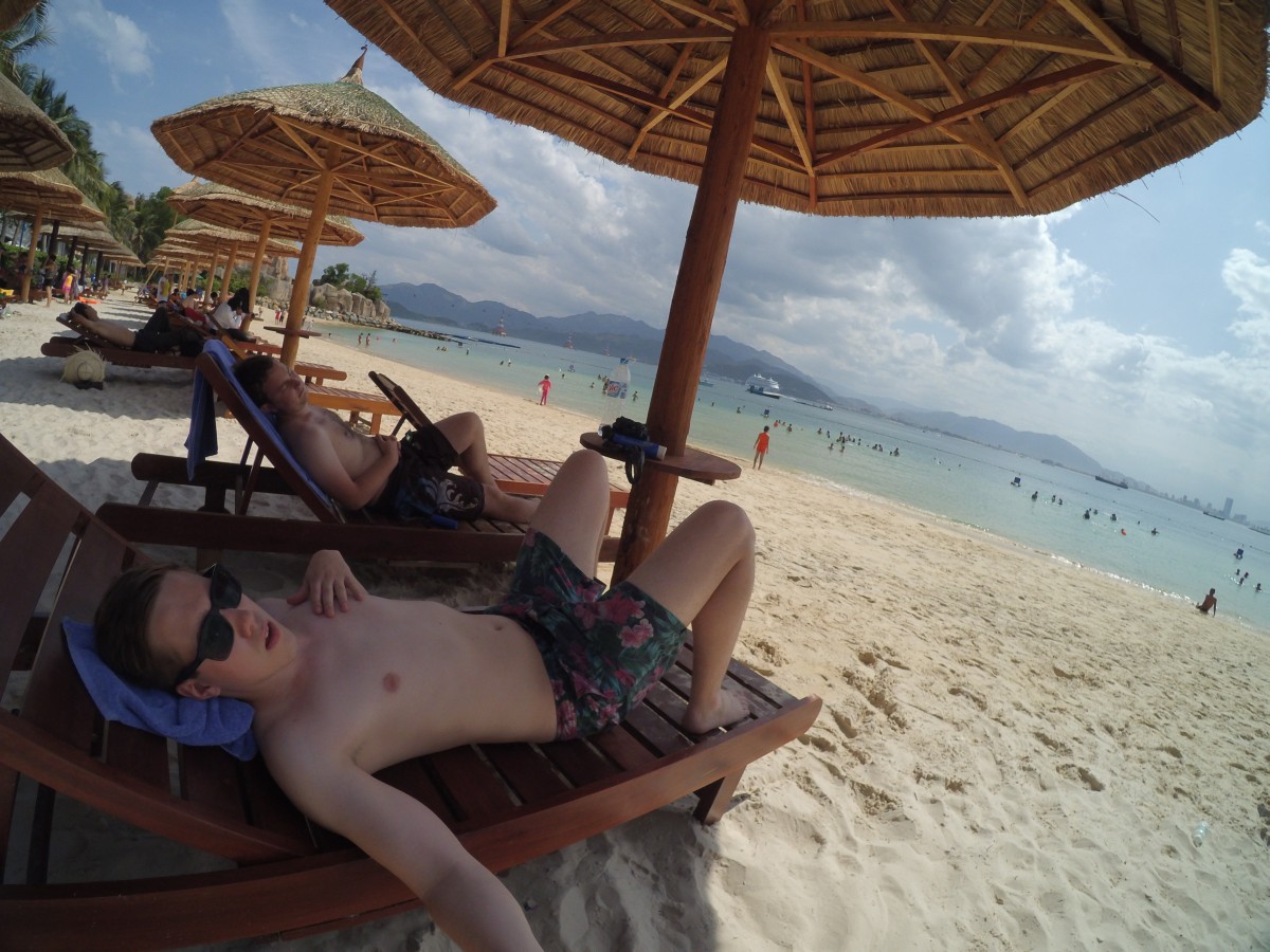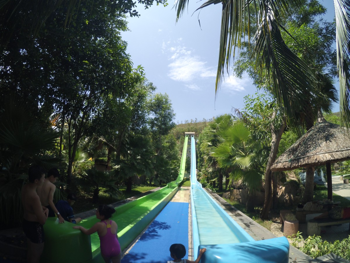 Gestern war der letzte Tag in Hoi An, nach dem wir unsere fertigen Anzüge abgeholt hatten sind wir noch etwas durch die Stadt geschlendert um dann Abends mit dem Nachtbus nach Nha Trang zu fahren. Heute sind wir dann nach einer super holprigen Fahrt gegen 6:30 angekommen, da der Check-in aber erst ab 11:00 im Hostel möglich war haben wir unsere Badehosen eingepackt und sind mit dem Bus zum Vinpearlland Vergnügungspark gefahren der unter anderem einen Wasserpark beinhaltet. Der Eintritt ist für Vietnam mit 20€ relativ hoch dafür sind aber alle Fahrgeschäfte und die Überfahrt mit Fähre/Seilbahn im Preis enthalten. Nach dem Park ging es dann zurück nach Nha Trang, wo uns das erste Mal aufgefallen ist das es von Russen nur so wimmelt. Daher hat auch ein Großteil der Bars und Geschäfte kyrillische Leuchtreklame und Karten ausliegen.