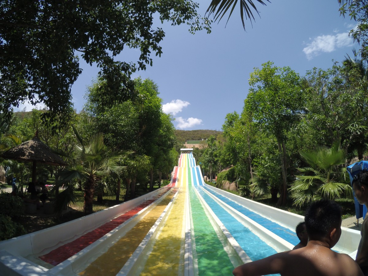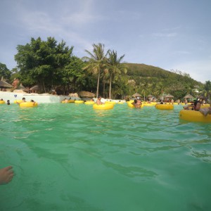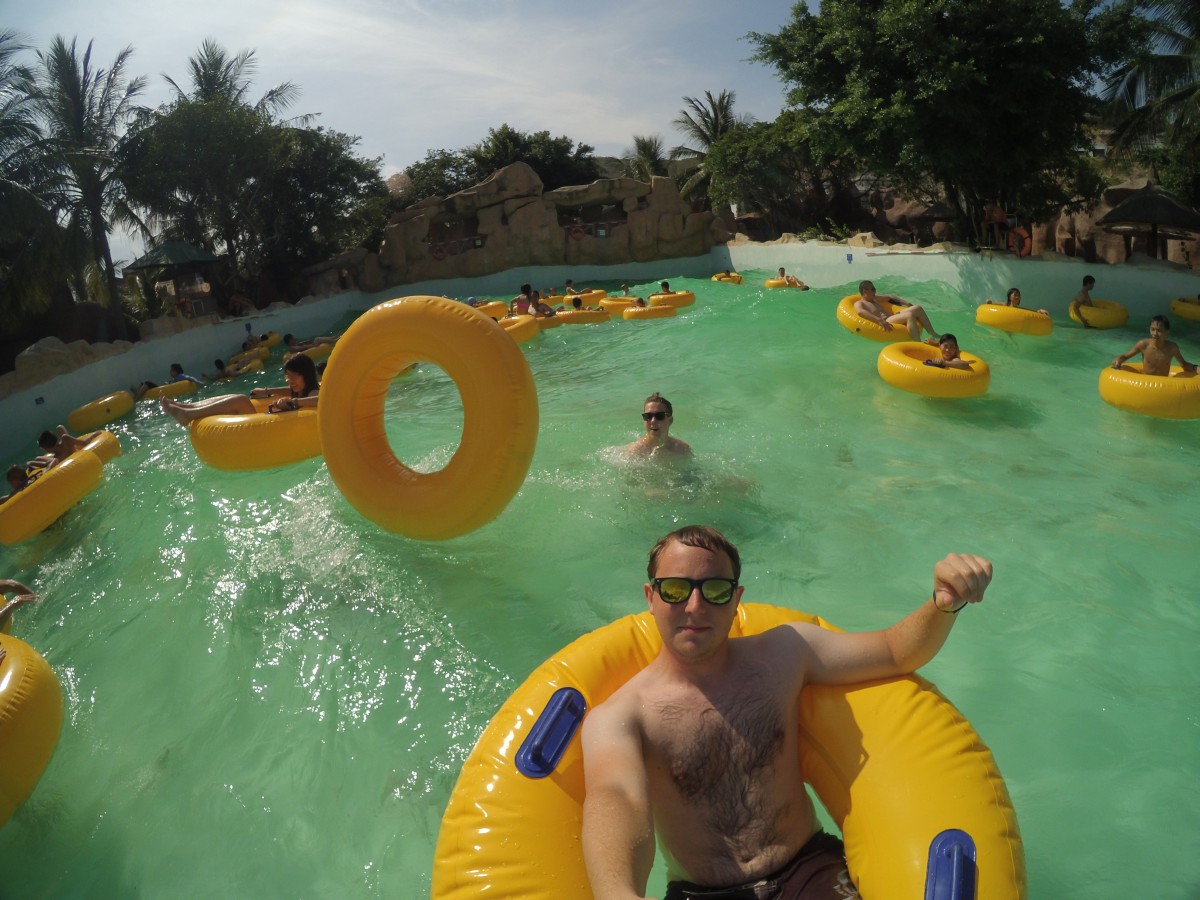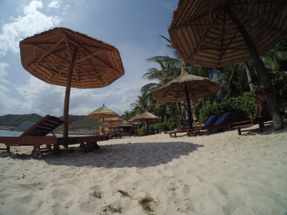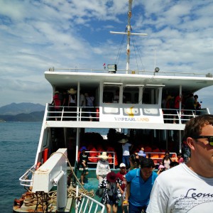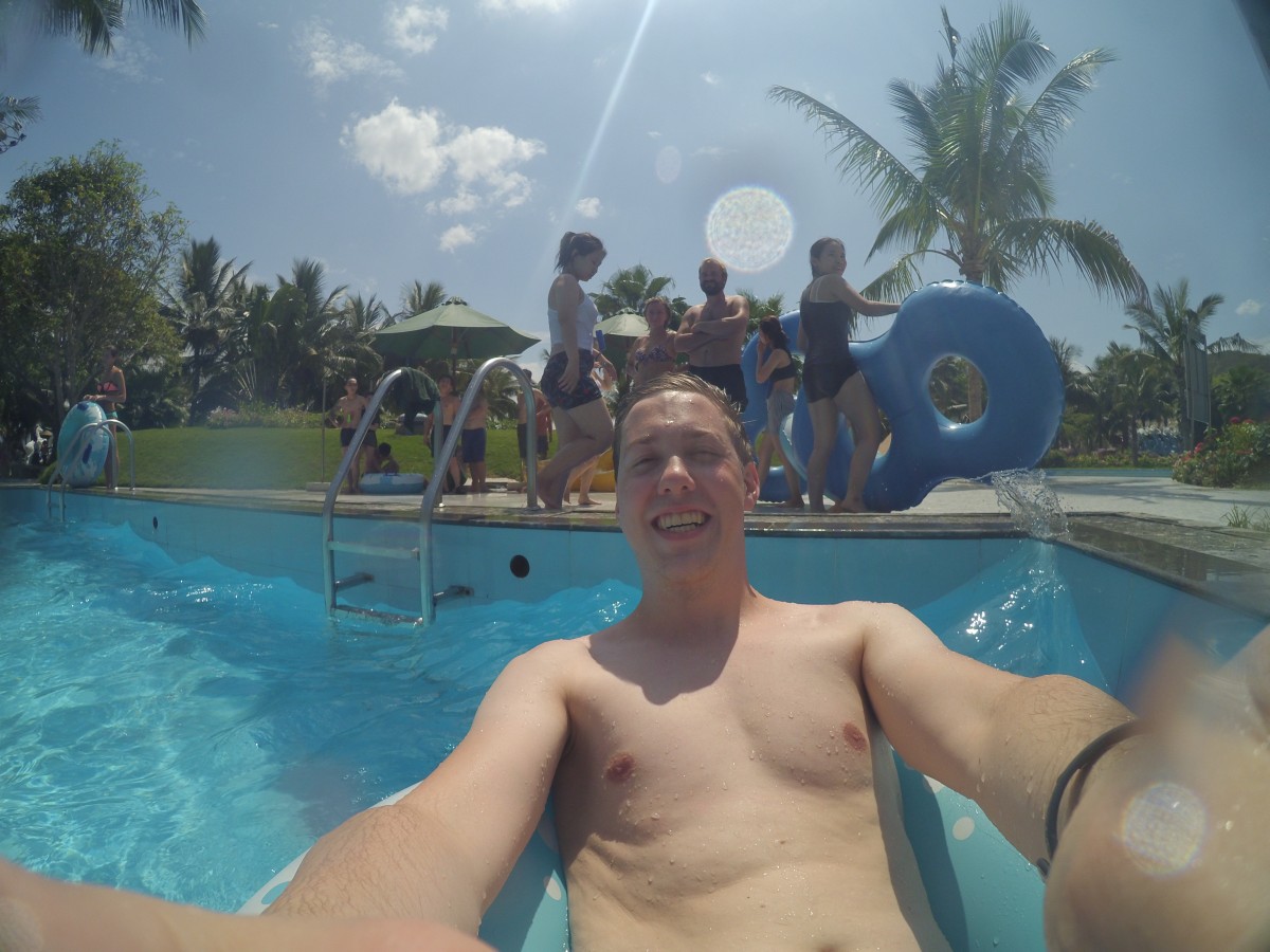 Gestern war der letzte Tag in Hoi An, nach dem wir unsere fertigen Anzüge abgeholt hatten sind wir noch etwas durch die Stadt geschlendert um dann Abends mit dem Nachtbus nach Nha Trang zu fahren. Heute sind wir dann nach einer super holprigen Fahrt gegen 6:30 angekommen, da der Check-in aber erst ab 11:00 im Hostel möglich war haben wir unsere Badehosen eingepackt und sind mit dem Bus zum Vinpearlland Vergnügungspark gefahren der unter anderem einen Wasserpark beinhaltet. Der Eintritt ist für Vietnam mit 20€ relativ hoch dafür sind aber alle Fahrgeschäfte und die Überfahrt mit Fähre/Seilbahn im Preis enthalten. Nach dem Park ging es dann zurück nach Nha Trang, wo uns das erste Mal aufgefallen ist das es von Russen nur so wimmelt. Daher hat auch ein Großteil der Bars und Geschäfte kyrillische Leuchtreklame und Karten ausliegen.