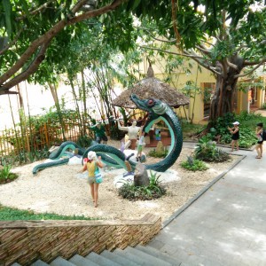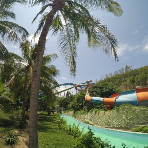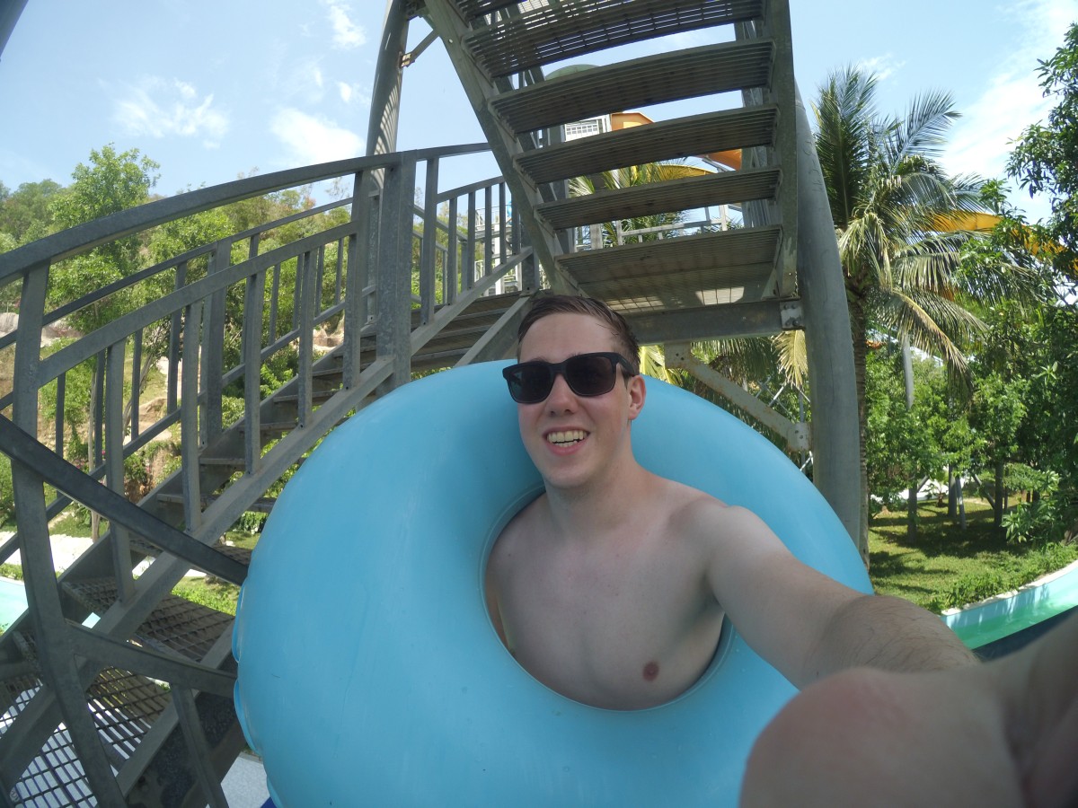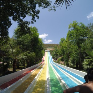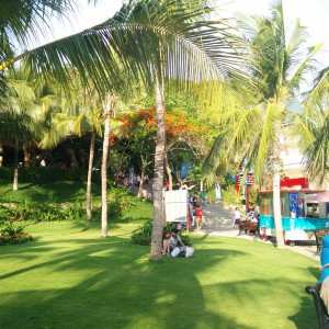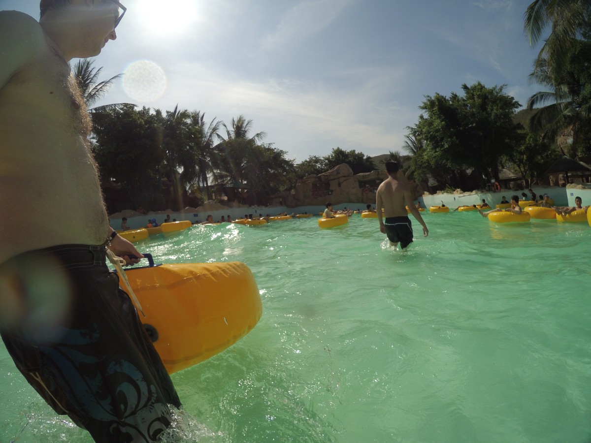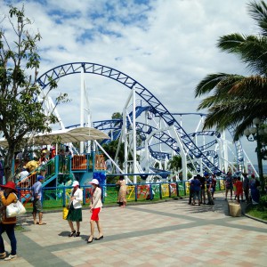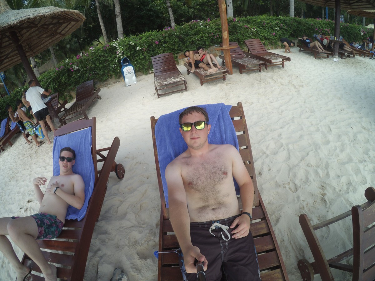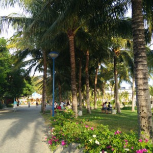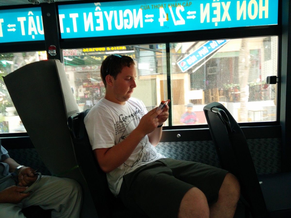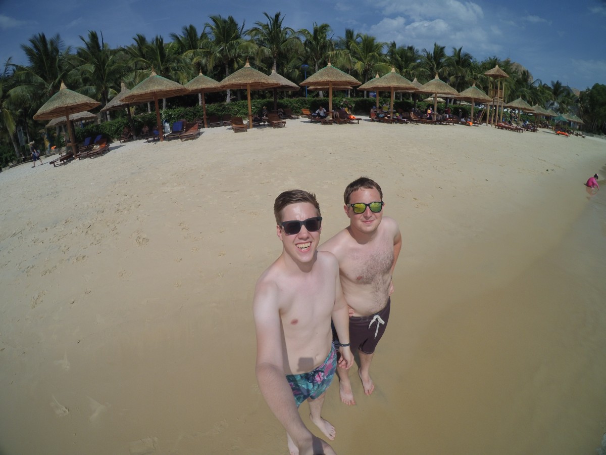 Gestern war der letzte Tag in Hoi An, nach dem wir unsere fertigen Anzüge abgeholt hatten sind wir noch etwas durch die Stadt geschlendert um dann Abends mit dem Nachtbus nach Nha Trang zu fahren. Heute sind wir dann nach einer super holprigen Fahrt gegen 6:30 angekommen, da der Check-in aber erst ab 11:00 im Hostel möglich war haben wir unsere Badehosen eingepackt und sind mit dem Bus zum Vinpearlland Vergnügungspark gefahren der unter anderem einen Wasserpark beinhaltet. Der Eintritt ist für Vietnam mit 20€ relativ hoch dafür sind aber alle Fahrgeschäfte und die Überfahrt mit Fähre/Seilbahn im Preis enthalten. Nach dem Park ging es dann zurück nach Nha Trang, wo uns das erste Mal aufgefallen ist das es von Russen nur so wimmelt. Daher hat auch ein Großteil der Bars und Geschäfte kyrillische Leuchtreklame und Karten ausliegen.