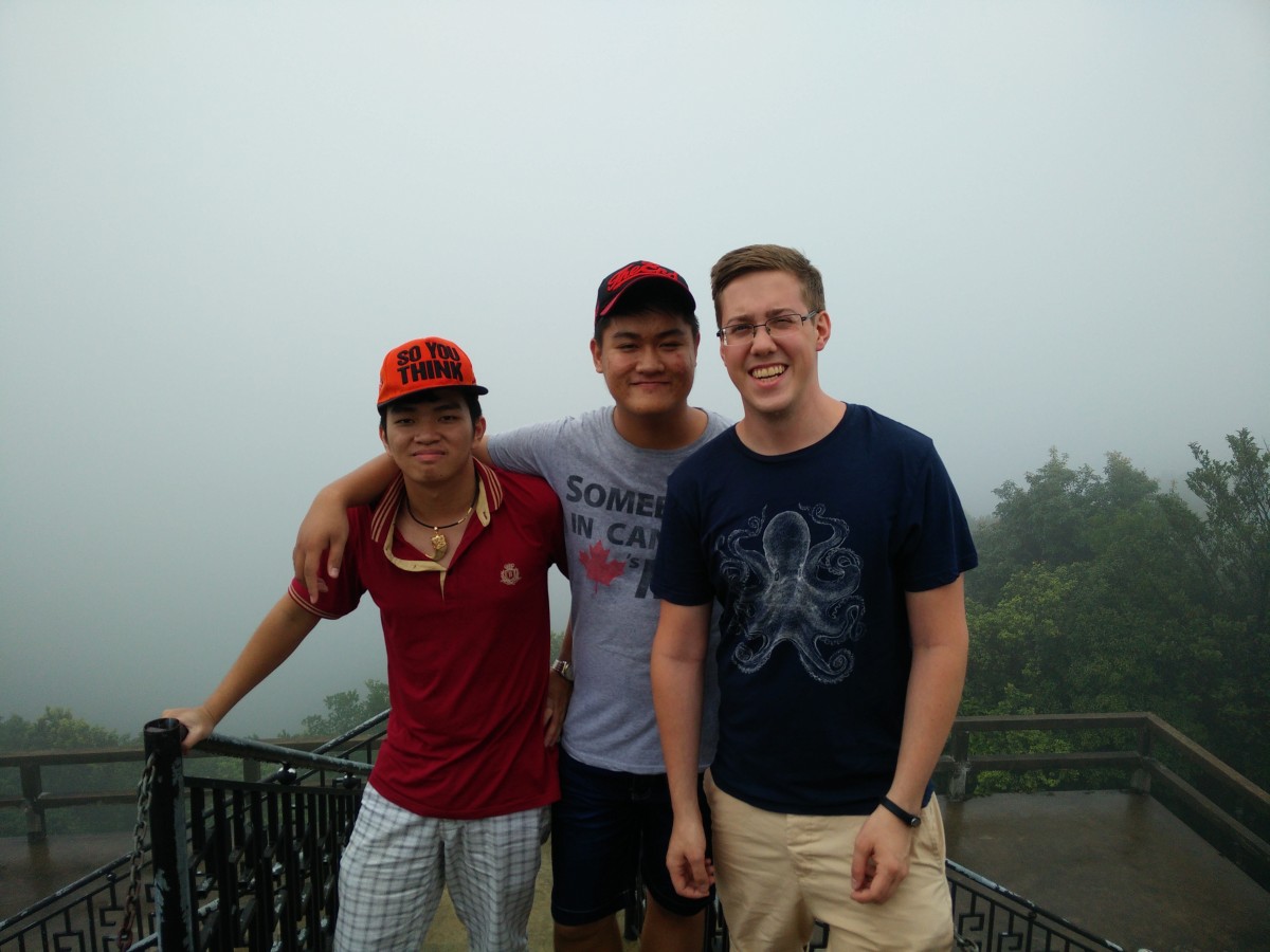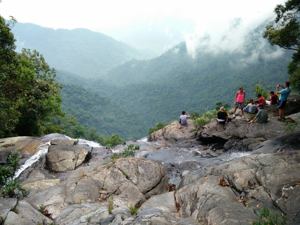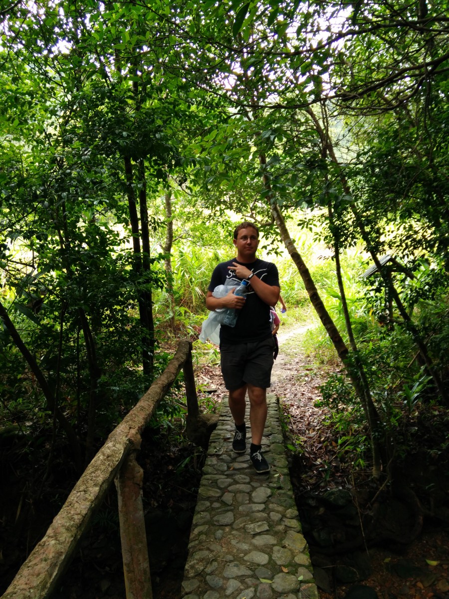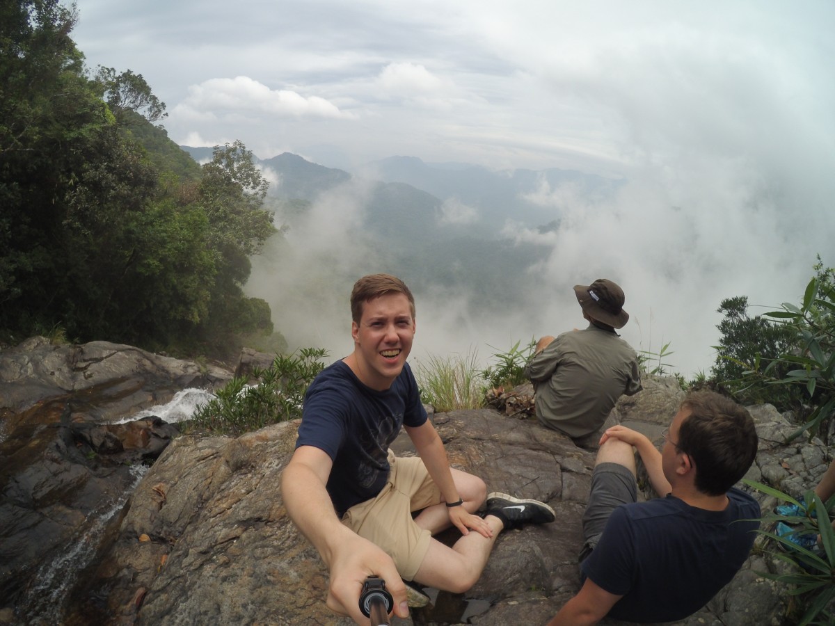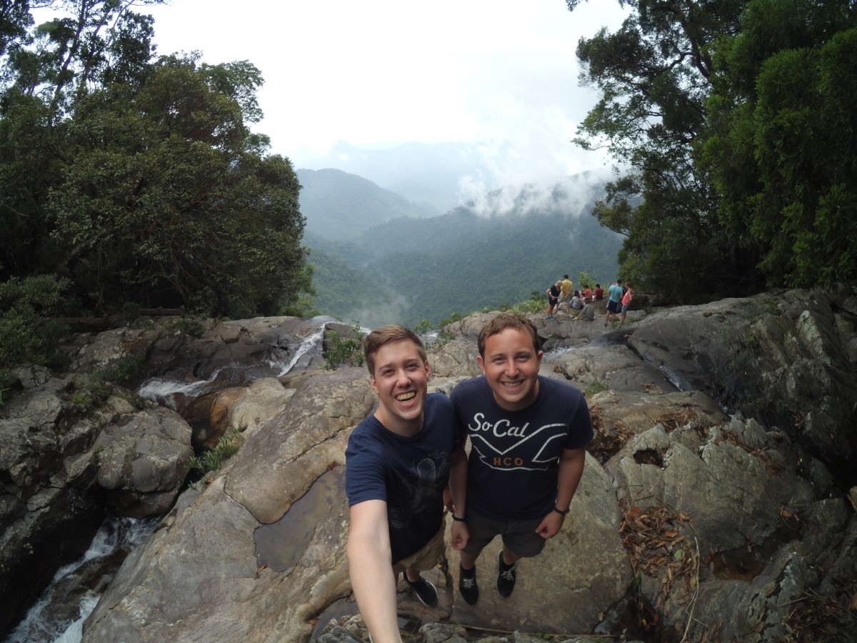 Heute sind wir in den Bach Mã Nationalpark gefahren, dieser liegt etwa 45 Autominuten von Hué entfernt. Nach Ankunft im Park ging es bei sehr bescheidenem Wetter per Bus auf die Bergspitze. Die Sichtweite lag aufgrund von starkem Nebel und Regen bei 5-10 Meter. Glücklicherweise klarte es dann aber innerhalb von 20 Minuten auf und wir konnten wenigstens etwas die Aussicht genießen. Anschließend Stand dann eine Wanderung an. Wobei es nach den ersten paar Treppen eher an eine Klettertour erinnerte. Glücklicherweise hatte Philip seine guten Calvin Klein Trekkingschuhe an, die ihm das Klettern erleichterten. Erstaunlicherweise war einer der vietnamesischen Studenten mit Badelatschen noch besser ausgerüstet. Vor allem da es von Blutegeln nur so wimmelte und wir bei jedem Stop jemanden verarzten mussten. Zum Ende der Tour gab es dann noch den berühmten Wasserfall zu bestaunen. Es ist auch möglich diesen von unten zu sehen dafür bedarf es aber eines Abstiegs von ~700 Treppenstufen, die anschließend natürlich wieder aufgestiegen werden müssen.