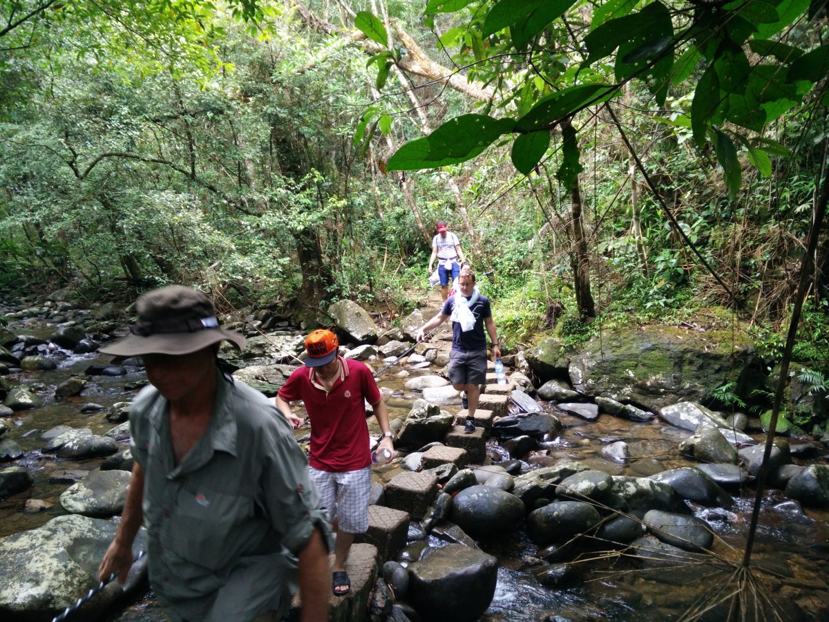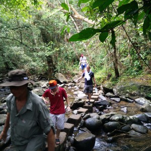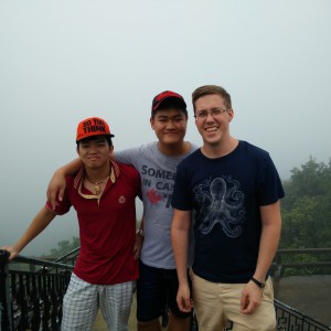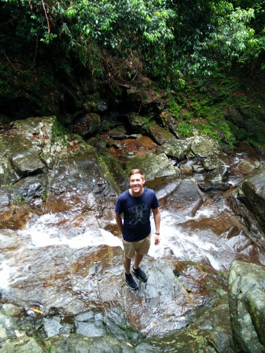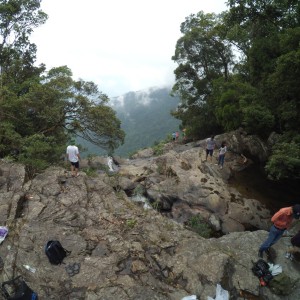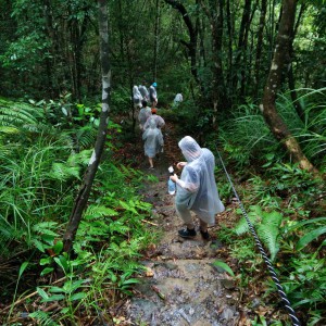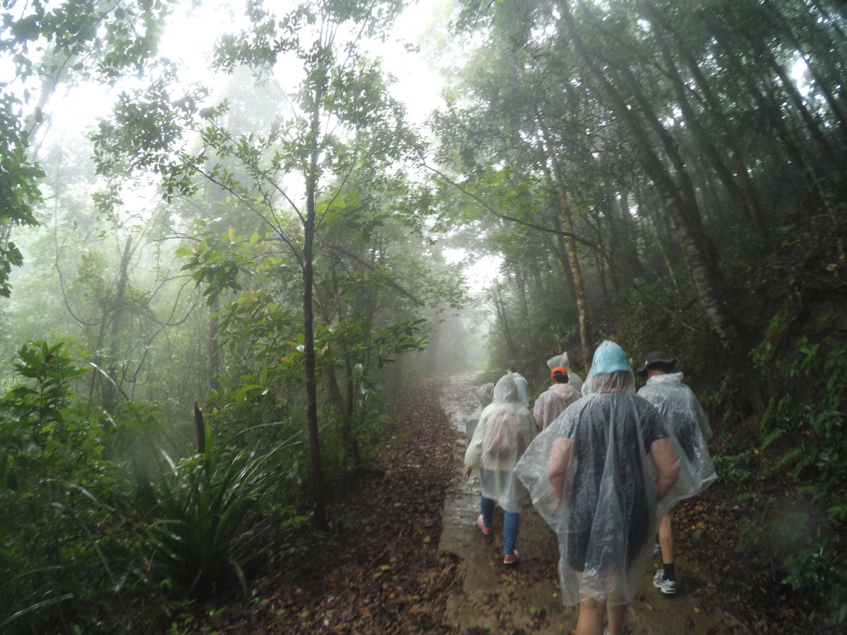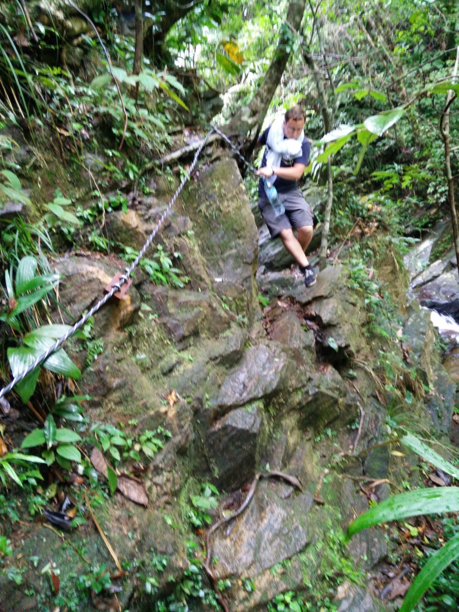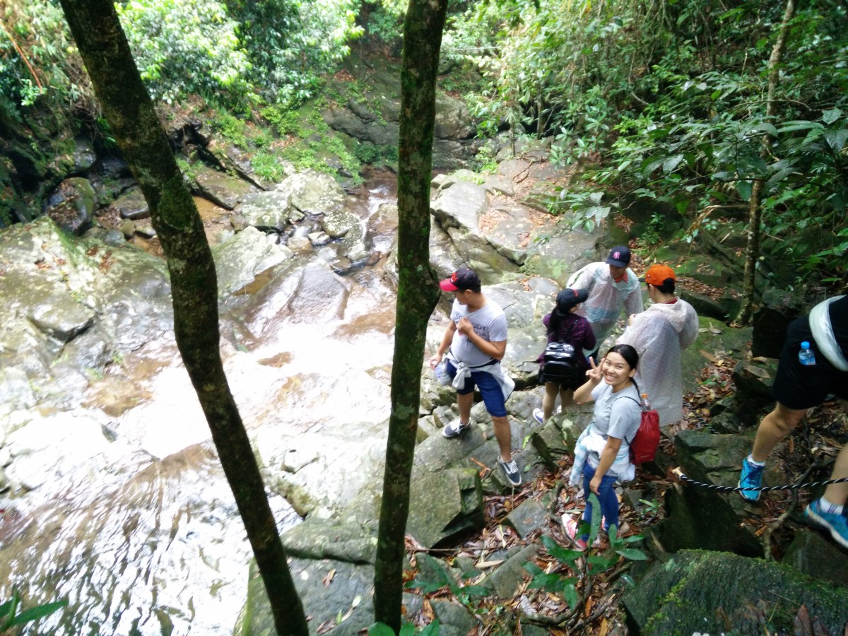 Heute sind wir in den Bach Mã Nationalpark gefahren, dieser liegt etwa 45 Autominuten von Hué entfernt. Nach Ankunft im Park ging es bei sehr bescheidenem Wetter per Bus auf die Bergspitze. Die Sichtweite lag aufgrund von starkem Nebel und Regen bei 5-10 Meter. Glücklicherweise klarte es dann aber innerhalb von 20 Minuten auf und wir konnten wenigstens etwas die Aussicht genießen. Anschließend Stand dann eine Wanderung an. Wobei es nach den ersten paar Treppen eher an eine Klettertour erinnerte. Glücklicherweise hatte Philip seine guten Calvin Klein Trekkingschuhe an, die ihm das Klettern erleichterten. Erstaunlicherweise war einer der vietnamesischen Studenten mit Badelatschen noch besser ausgerüstet. Vor allem da es von Blutegeln nur so wimmelte und wir bei jedem Stop jemanden verarzten mussten. Zum Ende der Tour gab es dann noch den berühmten Wasserfall zu bestaunen. Es ist auch möglich diesen von unten zu sehen dafür bedarf es aber eines Abstiegs von ~700 Treppenstufen, die anschließend natürlich wieder aufgestiegen werden müssen.
