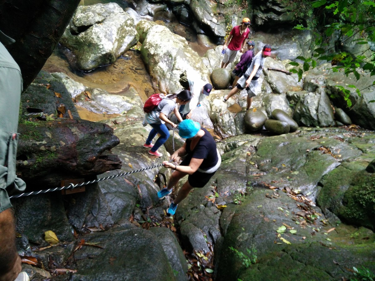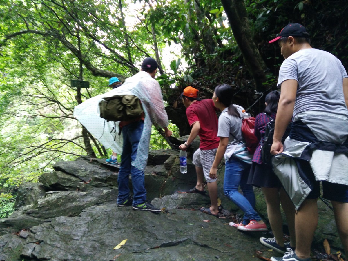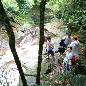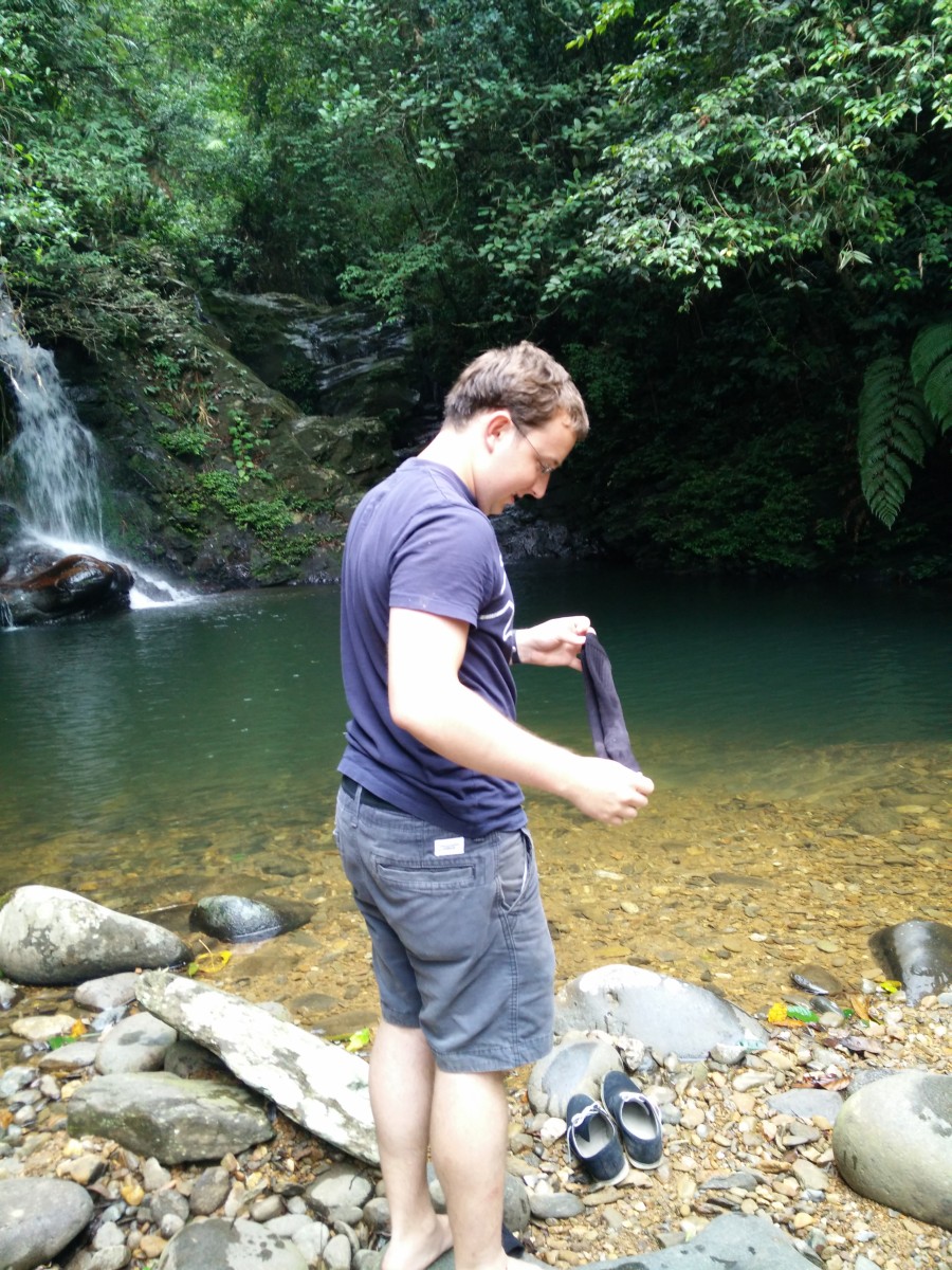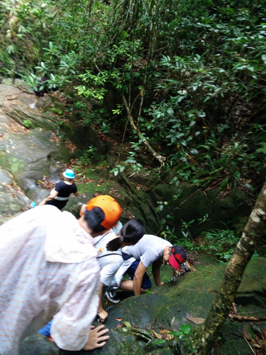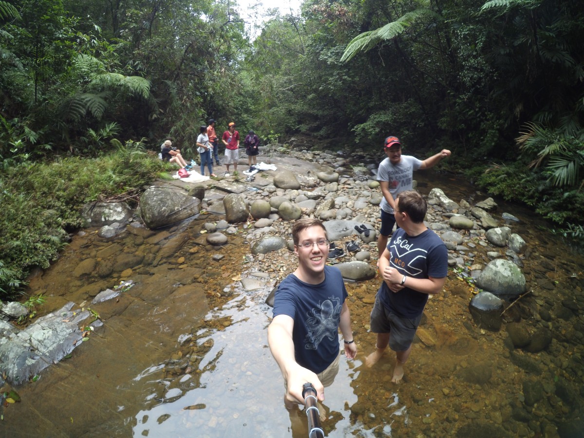 Heute sind wir in den Bach Mã Nationalpark gefahren, dieser liegt etwa 45 Autominuten von Hué entfernt. Nach Ankunft im Park ging es bei sehr bescheidenem Wetter per Bus auf die Bergspitze. Die Sichtweite lag aufgrund von starkem Nebel und Regen bei 5-10 Meter. Glücklicherweise klarte es dann aber innerhalb von 20 Minuten auf und wir konnten wenigstens etwas die Aussicht genießen. Anschließend Stand dann eine Wanderung an. Wobei es nach den ersten paar Treppen eher an eine Klettertour erinnerte. Glücklicherweise hatte Philip seine guten Calvin Klein Trekkingschuhe an, die ihm das Klettern erleichterten. Erstaunlicherweise war einer der vietnamesischen Studenten mit Badelatschen noch besser ausgerüstet. Vor allem da es von Blutegeln nur so wimmelte und wir bei jedem Stop jemanden verarzten mussten. Zum Ende der Tour gab es dann noch den berühmten Wasserfall zu bestaunen. Es ist auch möglich diesen von unten zu sehen dafür bedarf es aber eines Abstiegs von ~700 Treppenstufen, die anschließend natürlich wieder aufgestiegen werden müssen.