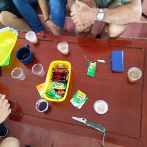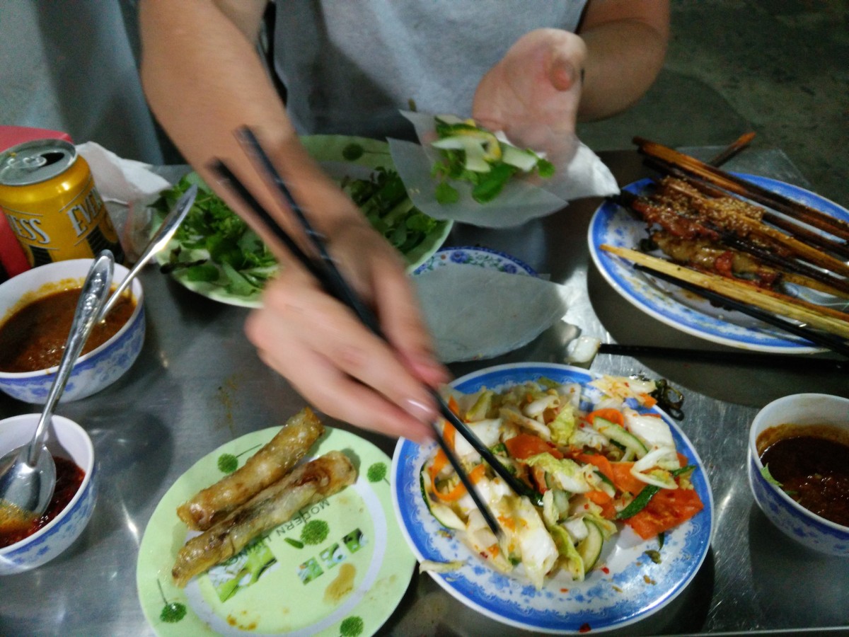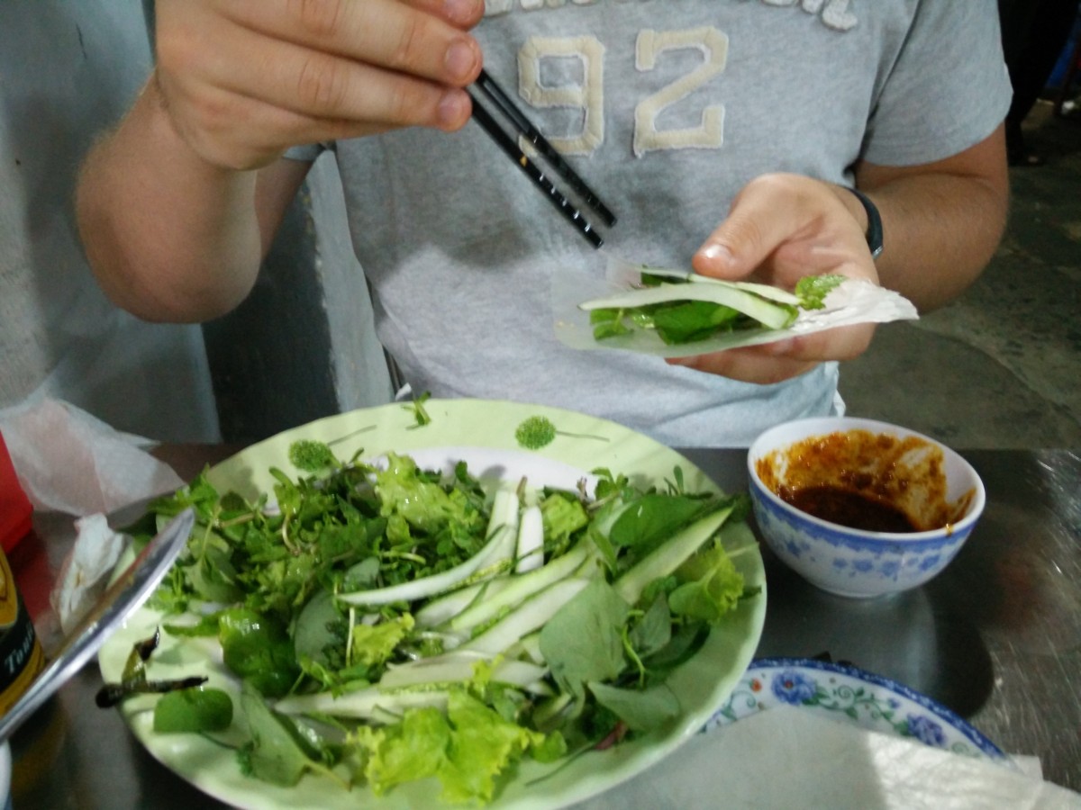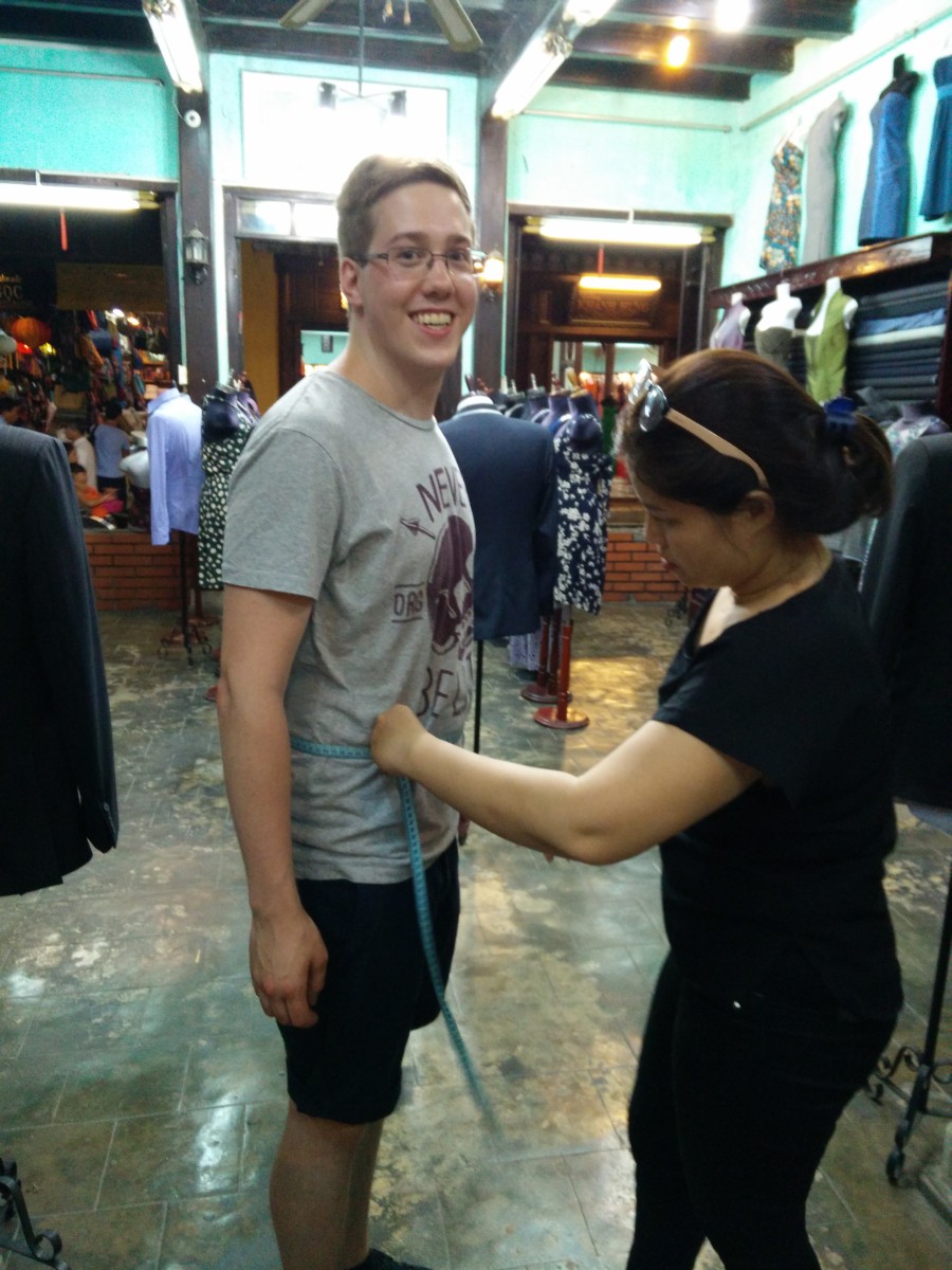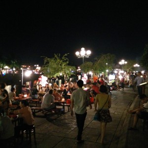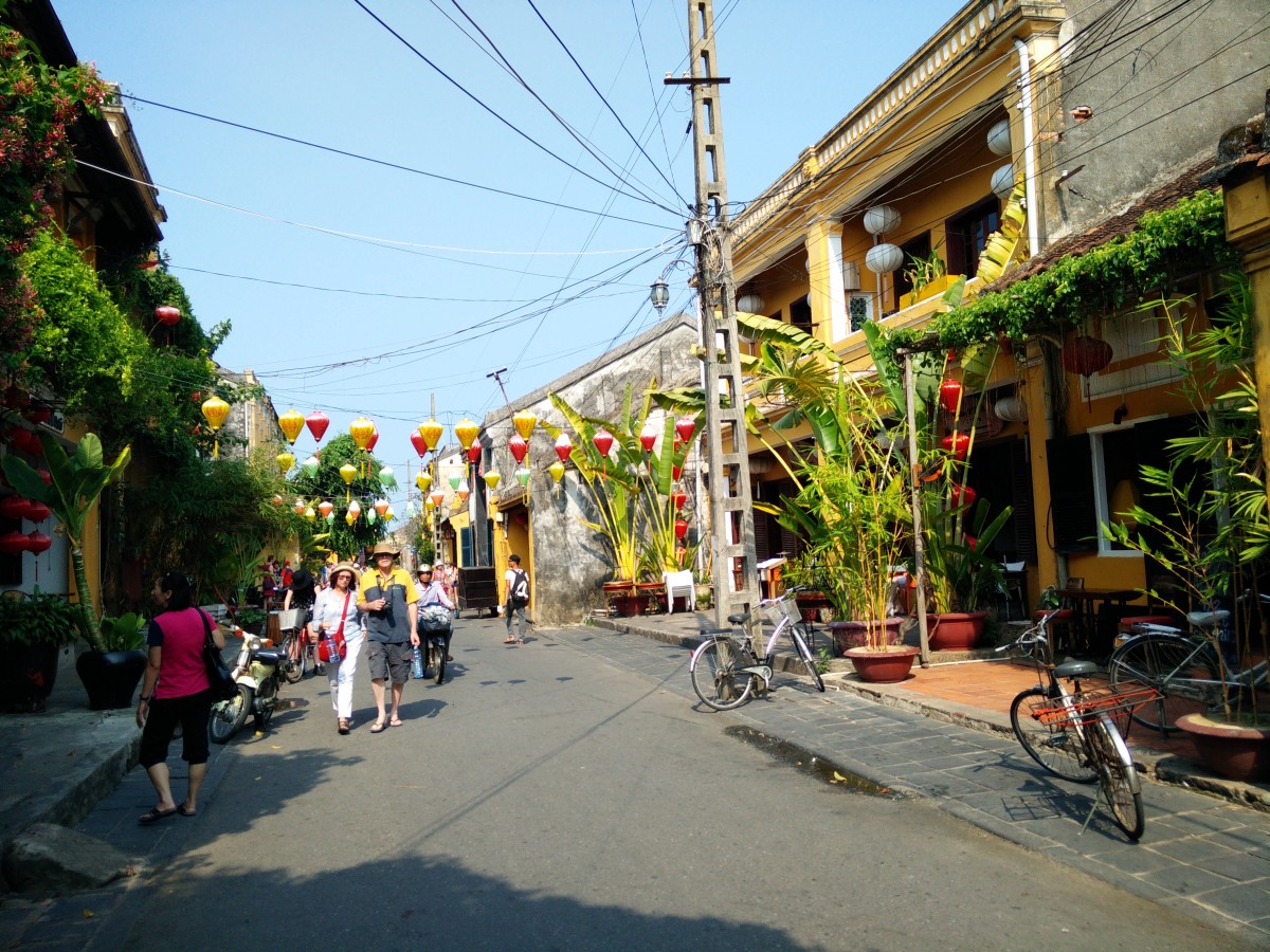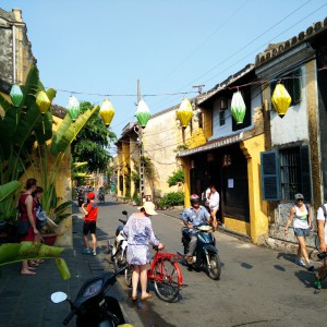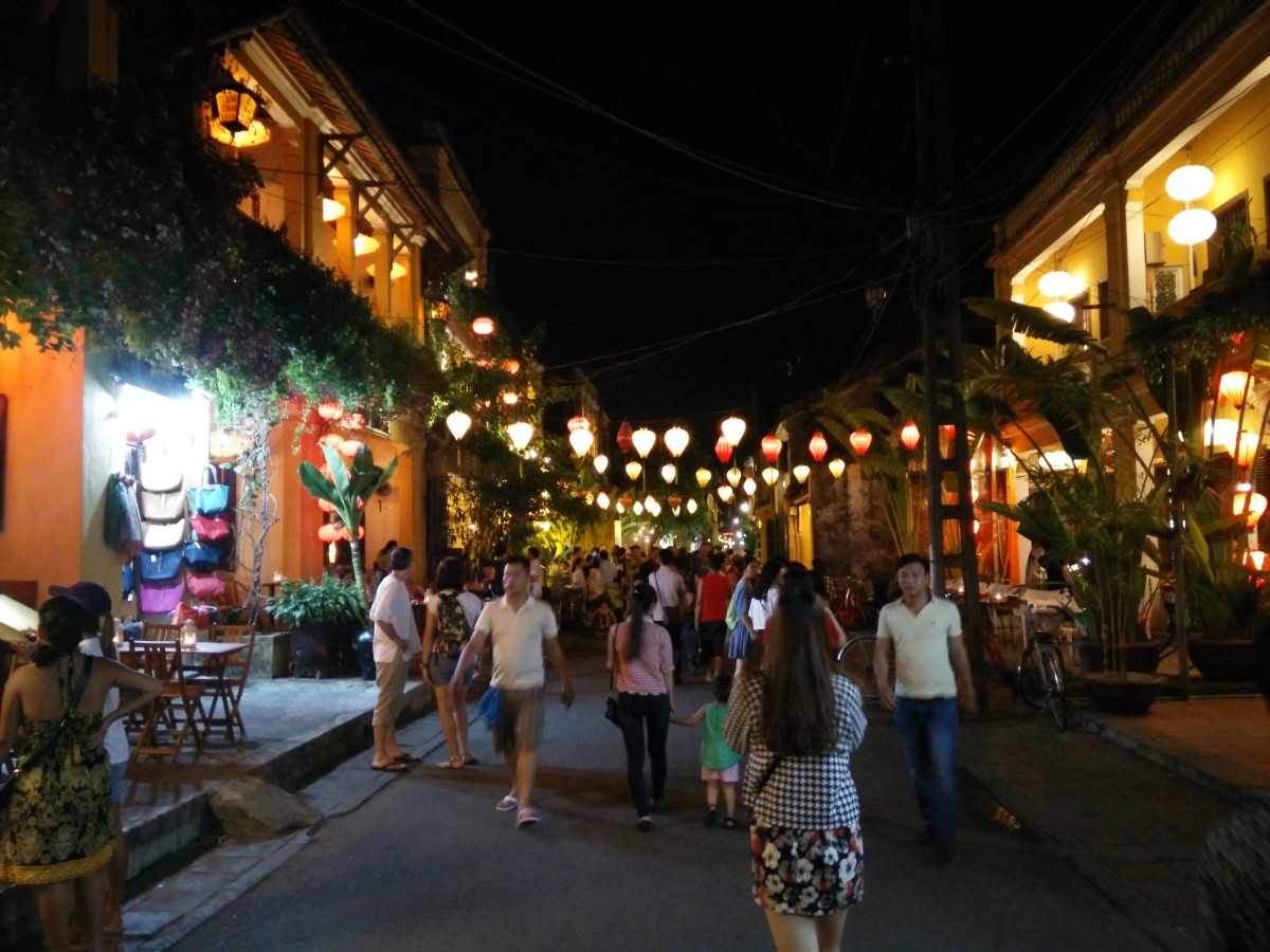 Heute ging es wieder eine Etappe weiter und so machten wir uns auf nach Hoi An. Die Busfahrt dauerte vier Stunden und war aufgrund des maroden Reisebusses alles andere als angenehm. Dafür ist Hoi An an sich eine wirkliche Perle. Vor allem die autofreien Stadtteile sind wunderschön. Generell wirkt die Stadt sauberer und aufgeräumter als die bisherigen Städte. Dank der direkten Lage am Meer konnten wir heute sogar noch kurz an den Strand baden gehen. Ansonsten ist die Stadt vor allem für ihre zahllosen Schneider bekannt die auf Wunsch alles innerhalb von 1 – 2 Tagen anfertigen. Abends gab es dann noch Hoi Ans bestes gegrilltes Schweinefleisch in einem Restaurant in dem man lediglich die Getränke wählen kann und ansonsten jeder die selbe Spezialität aufgetischt bekommt.