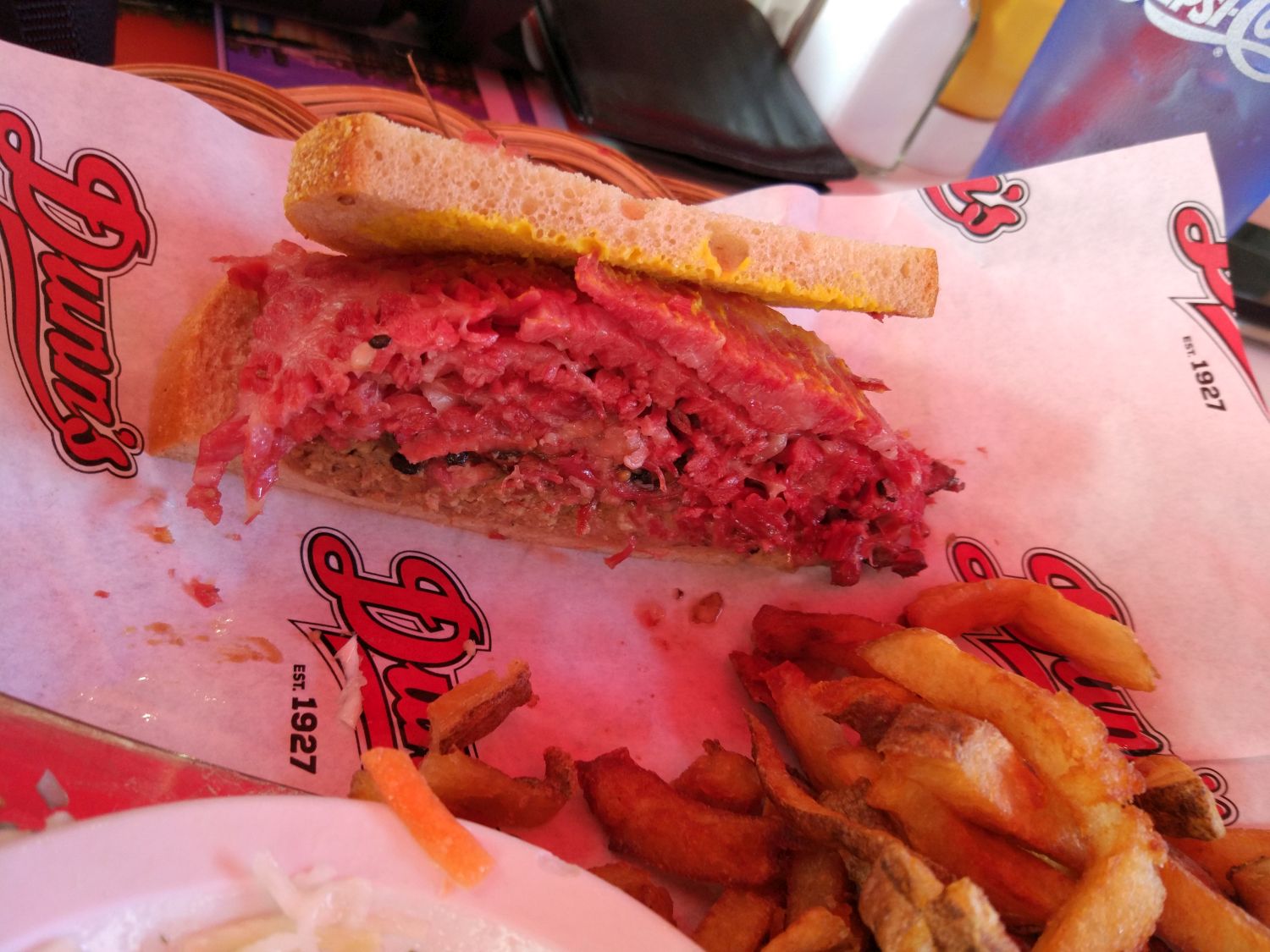 Heute war es bereits Zeit Montreal lebewohl zu sagen. Nach einem Spaziergang machten wir noch schnell Stopp um ein berühmtes Smoked Meat Sandwich bei Dunne’s Famous Deli zu probieren. Auf der Fahrt aus Montreal raus machten wir dann noch kurz halt bei einer Olympia Austragungsstädte und von dort aus ging es direkt an die Grenze. Hier übernahm ich dann wieder das Steuer und nach einem kurzen Stop bei Wendys und einem Bacinator später ging es weiter durch malerische Landschaft auf nicht Enden wollenden Landstraßen. Abends erreichten wir dann das verschlafene Örtchen Saranac Lake in dem Philip aktuell mit seinem Mitbewohner Dorian wohnt. Da Philip direkt wieder zur Nachtschicht ins Hotel musste richtete ich mich häuslich ein und ging irgendwann ins Bett.