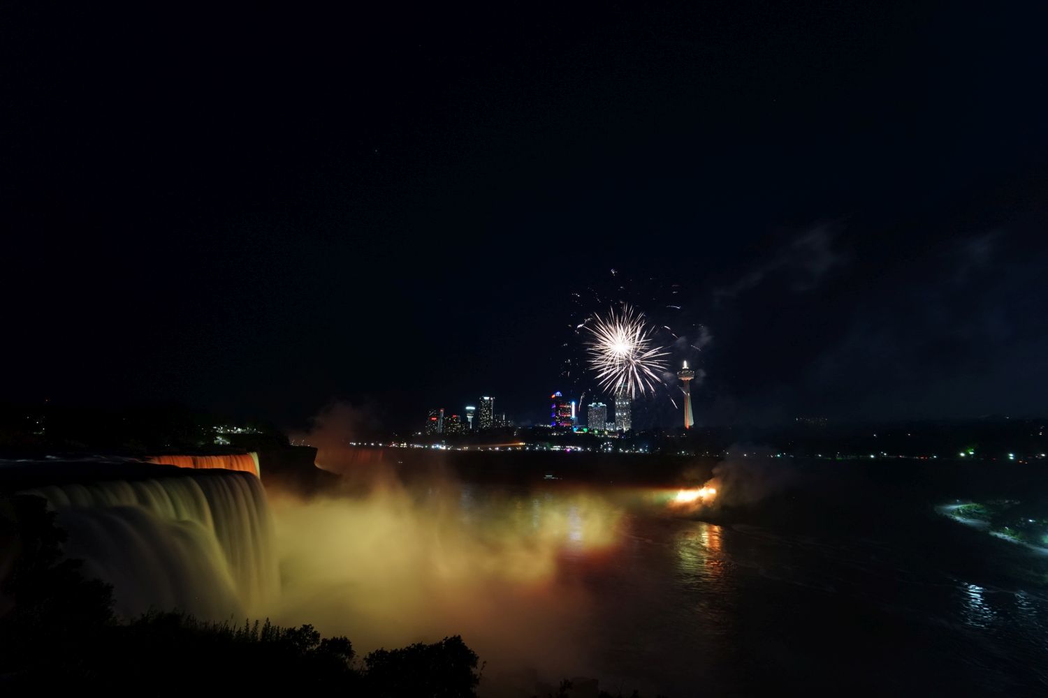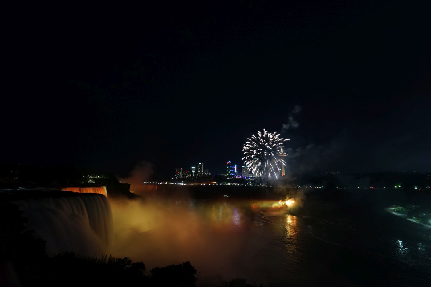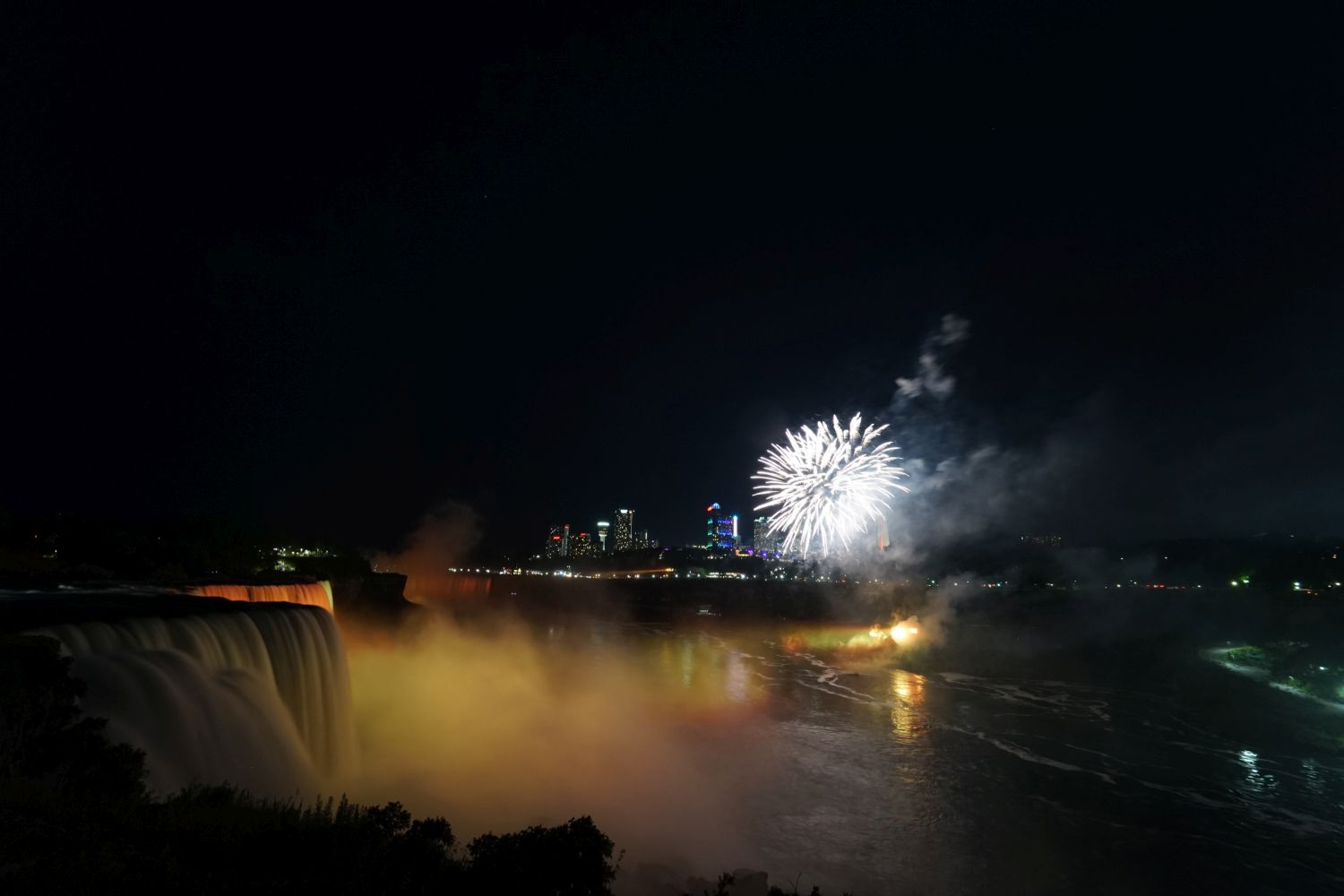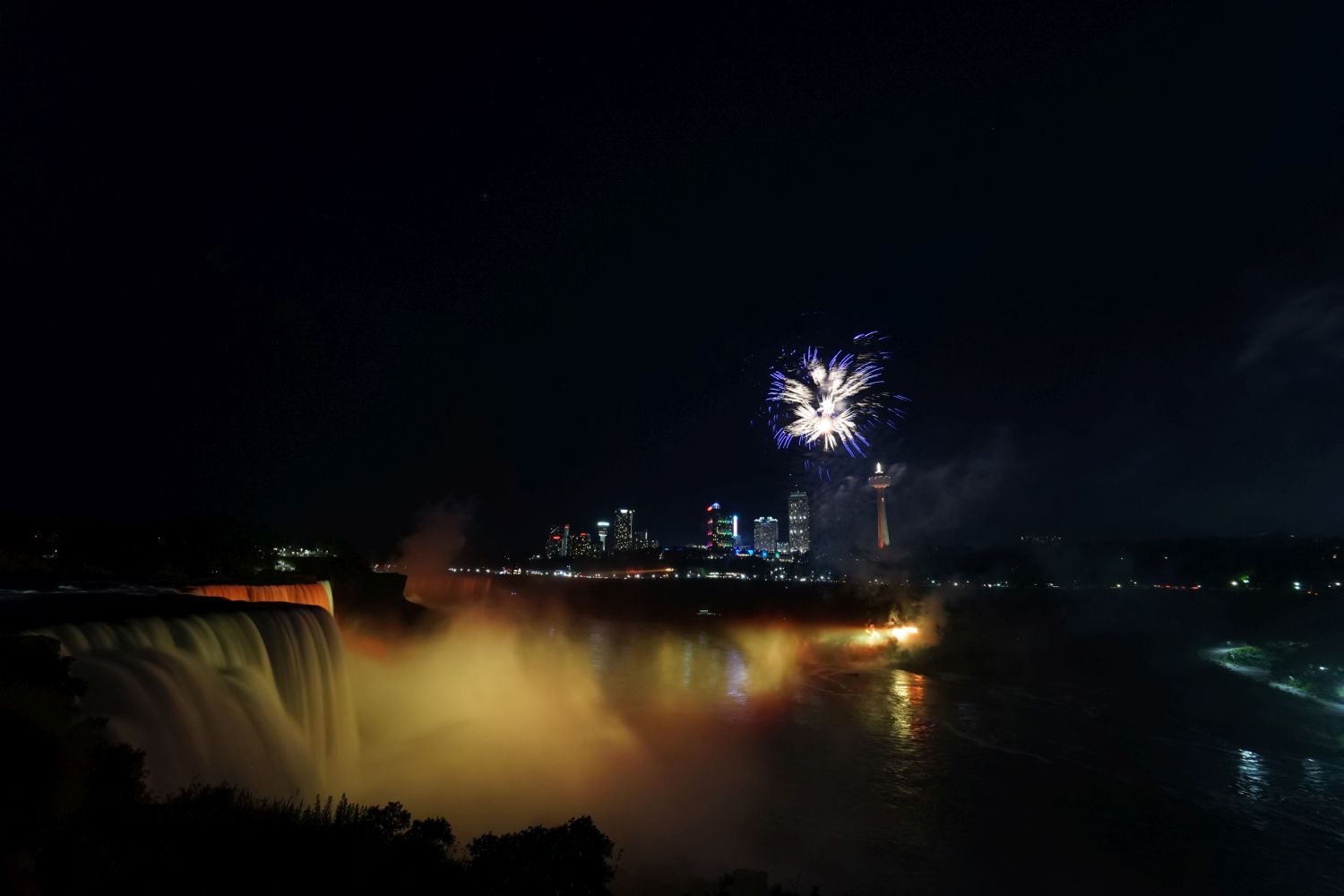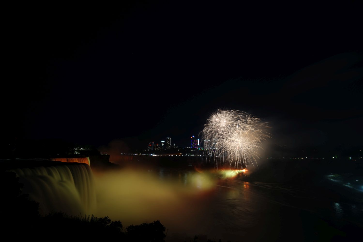 Da Philip erst am nächsten Tag im Ort eintreffen sollte machte ich kurz noch ein paar Einkäufe und stiefelte schon mal zu den Wasserfällen. Diese werden ab etwa 20 Uhr farbig beleuchtet und in der Hauptsaison, die glücklicherweise Mitte Juni beginnt, gibt es Montag bis Freitag gegen 22 Uhr ein Feuerwerk. Da ich über den Tag hinweg eh wenig Fotos gemacht hatte wollte ich noch ein paar schöne Nachtaufnahmen des Feuerwerks und der Wasserfälle schießen.
