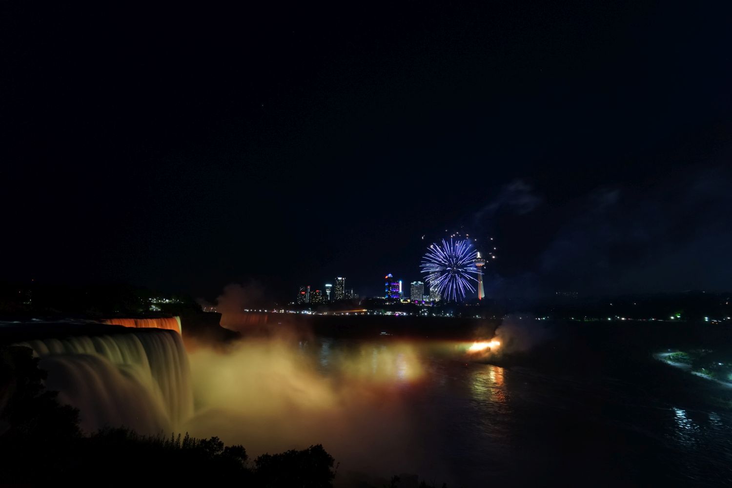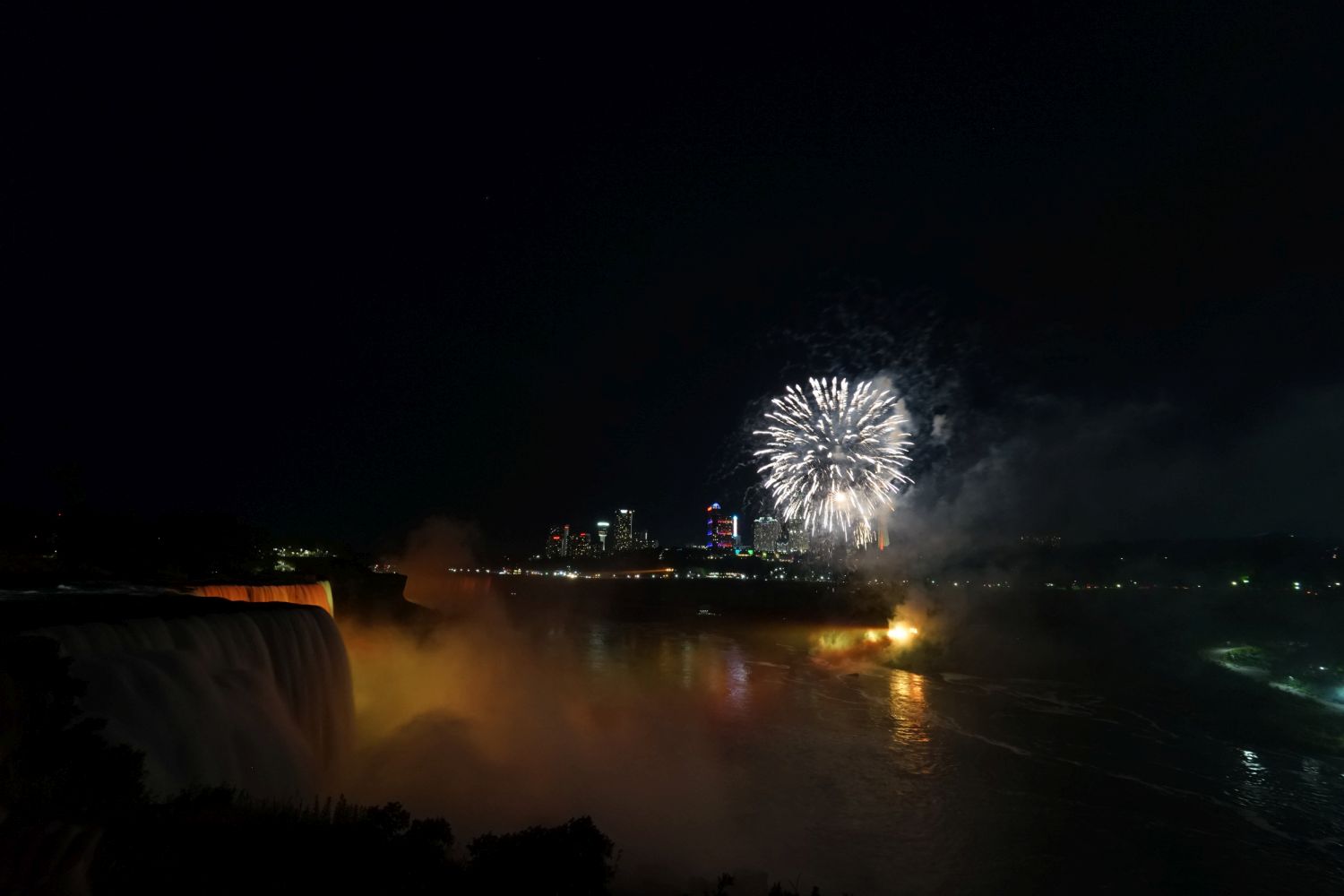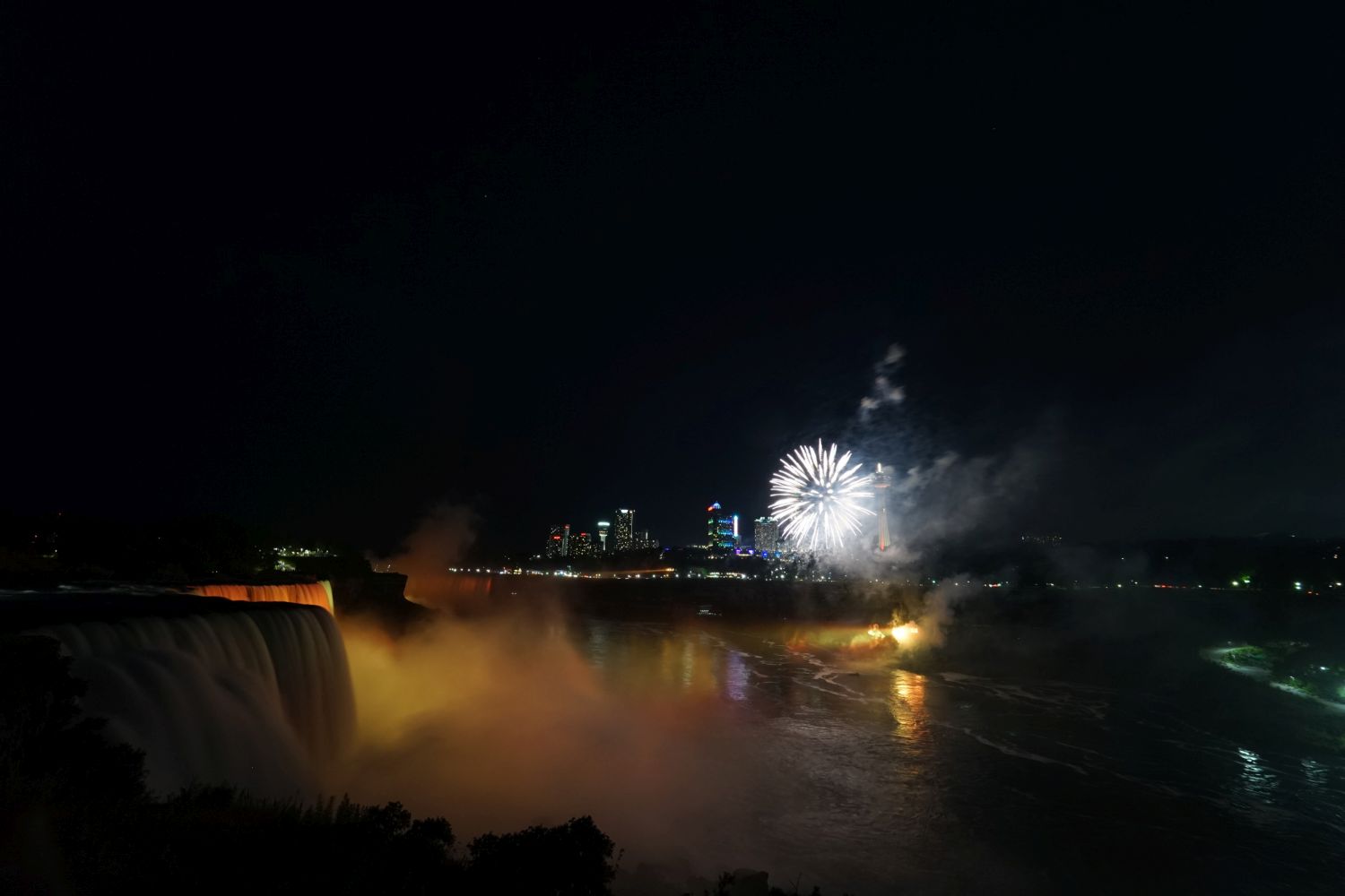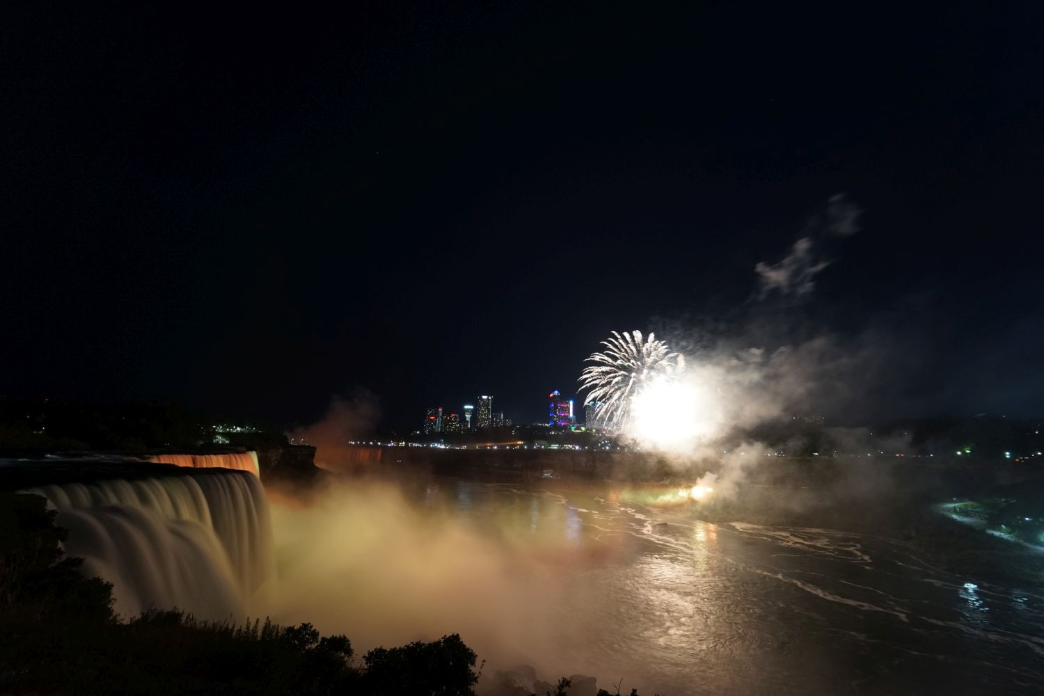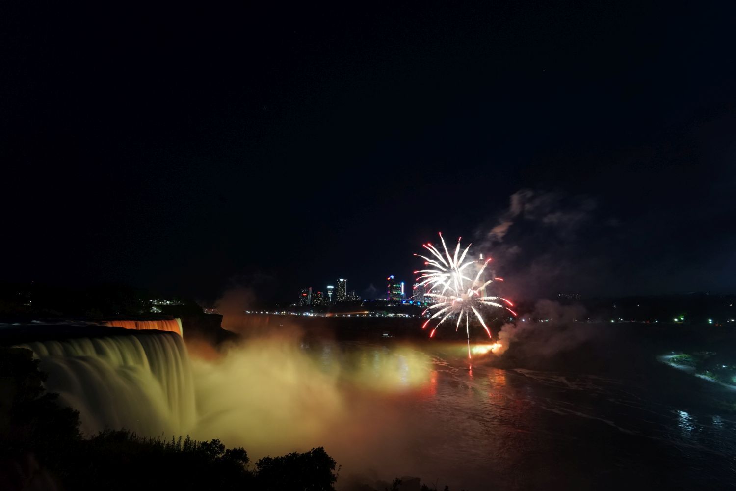 Da Philip erst am nächsten Tag im Ort eintreffen sollte machte ich kurz noch ein paar Einkäufe und stiefelte schon mal zu den Wasserfällen. Diese werden ab etwa 20 Uhr farbig beleuchtet und in der Hauptsaison, die glücklicherweise Mitte Juni beginnt, gibt es Montag bis Freitag gegen 22 Uhr ein Feuerwerk. Da ich über den Tag hinweg eh wenig Fotos gemacht hatte wollte ich noch ein paar schöne Nachtaufnahmen des Feuerwerks und der Wasserfälle schießen.