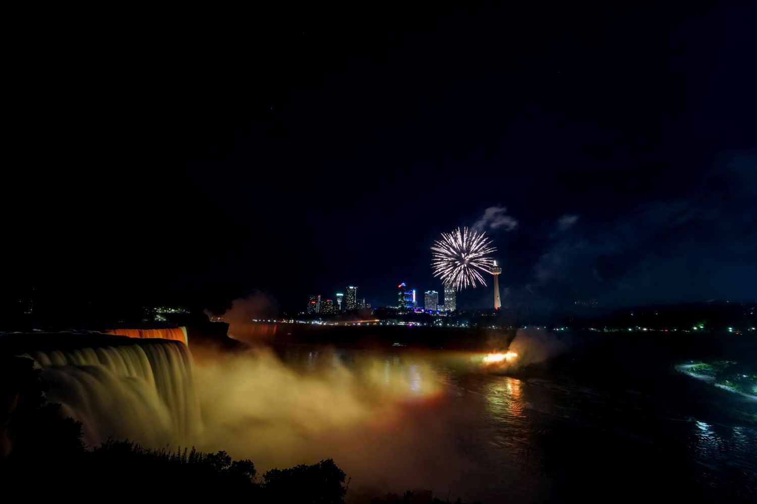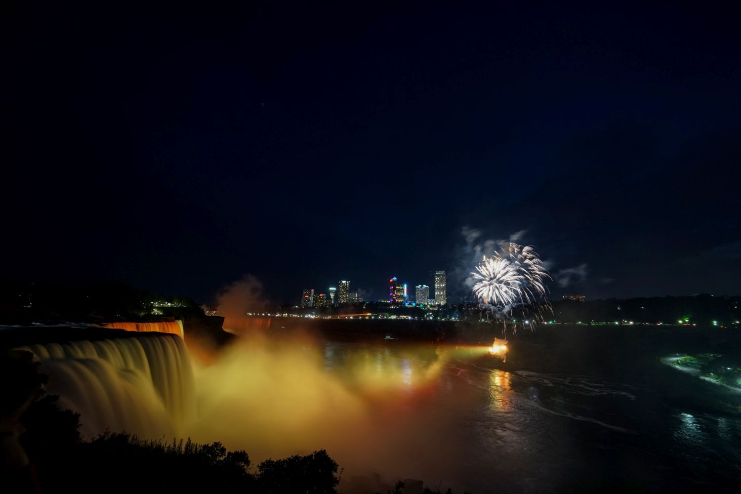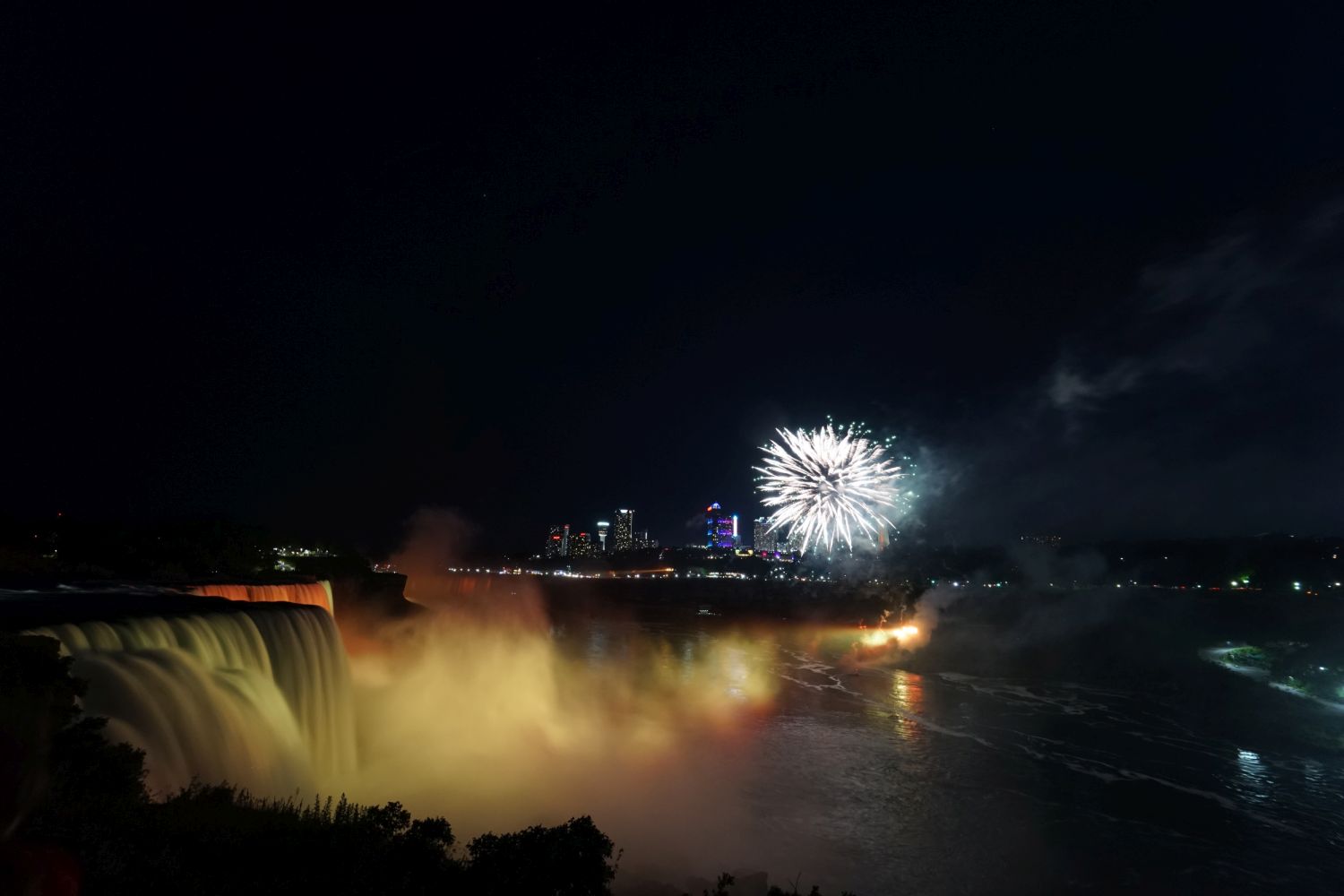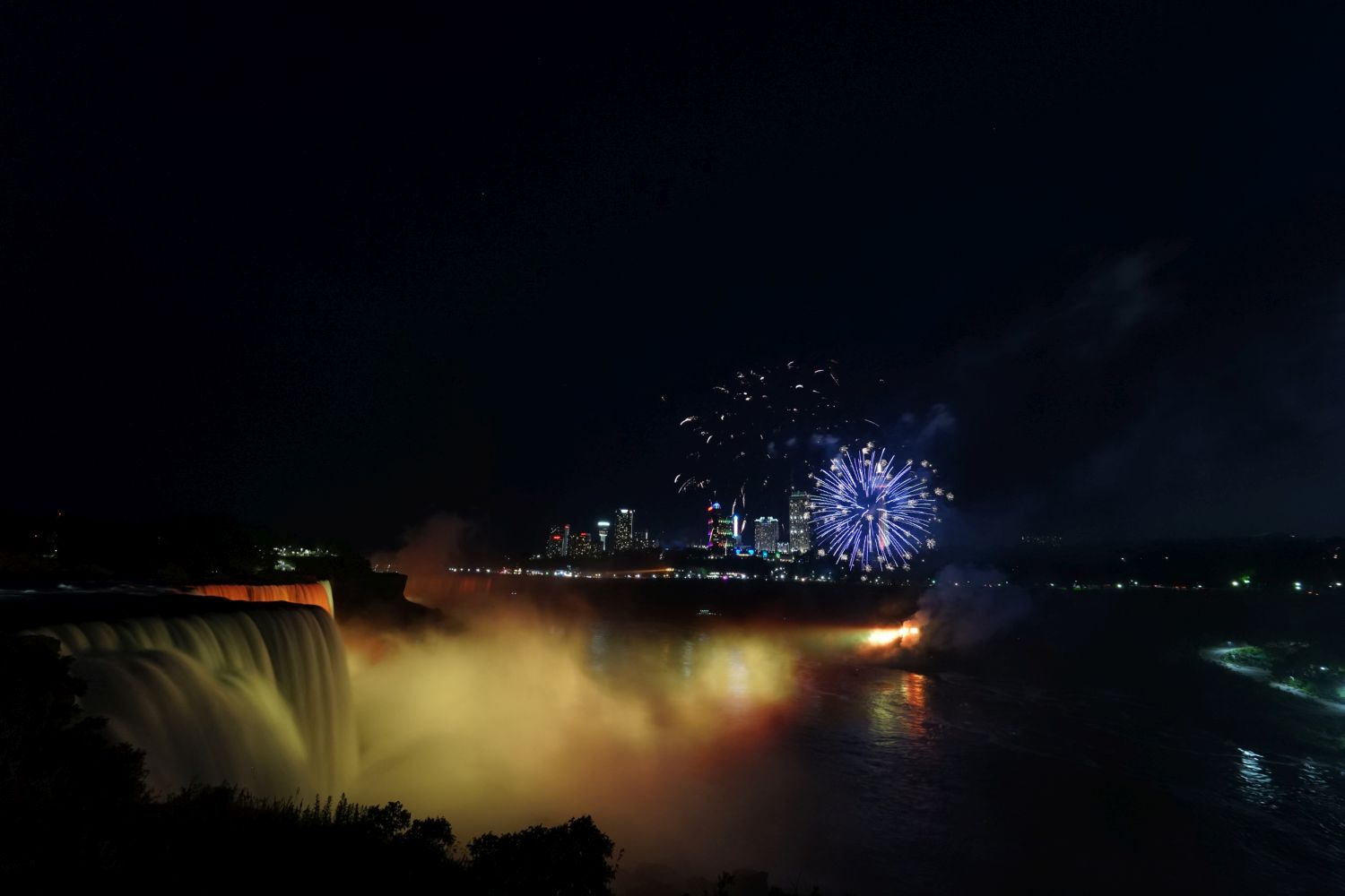 Da Philip erst am nächsten Tag im Ort eintreffen sollte machte ich kurz noch ein paar Einkäufe und stiefelte schon mal zu den Wasserfällen. Diese werden ab etwa 20 Uhr farbig beleuchtet und in der Hauptsaison, die glücklicherweise Mitte Juni beginnt, gibt es Montag bis Freitag gegen 22 Uhr ein Feuerwerk. Da ich über den Tag hinweg eh wenig Fotos gemacht hatte wollte ich noch ein paar schöne Nachtaufnahmen des Feuerwerks und der Wasserfälle schießen.