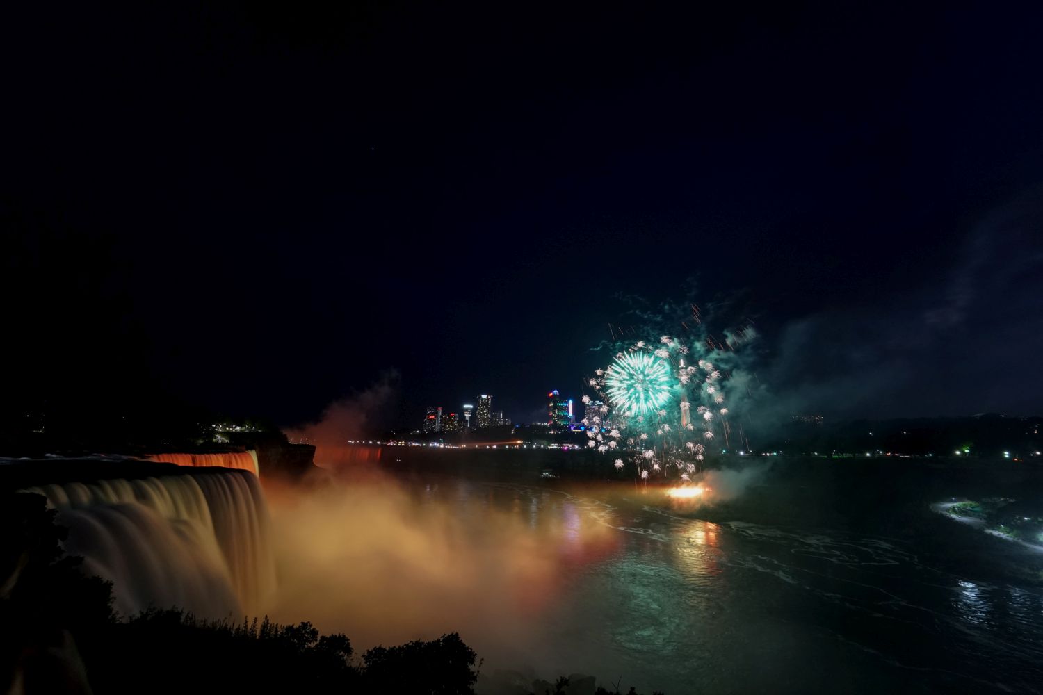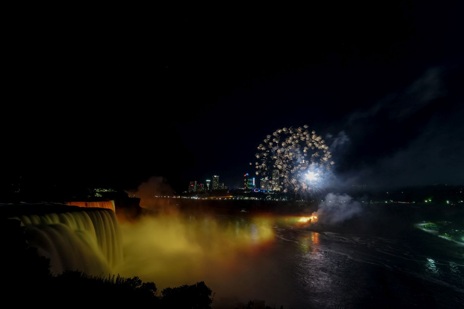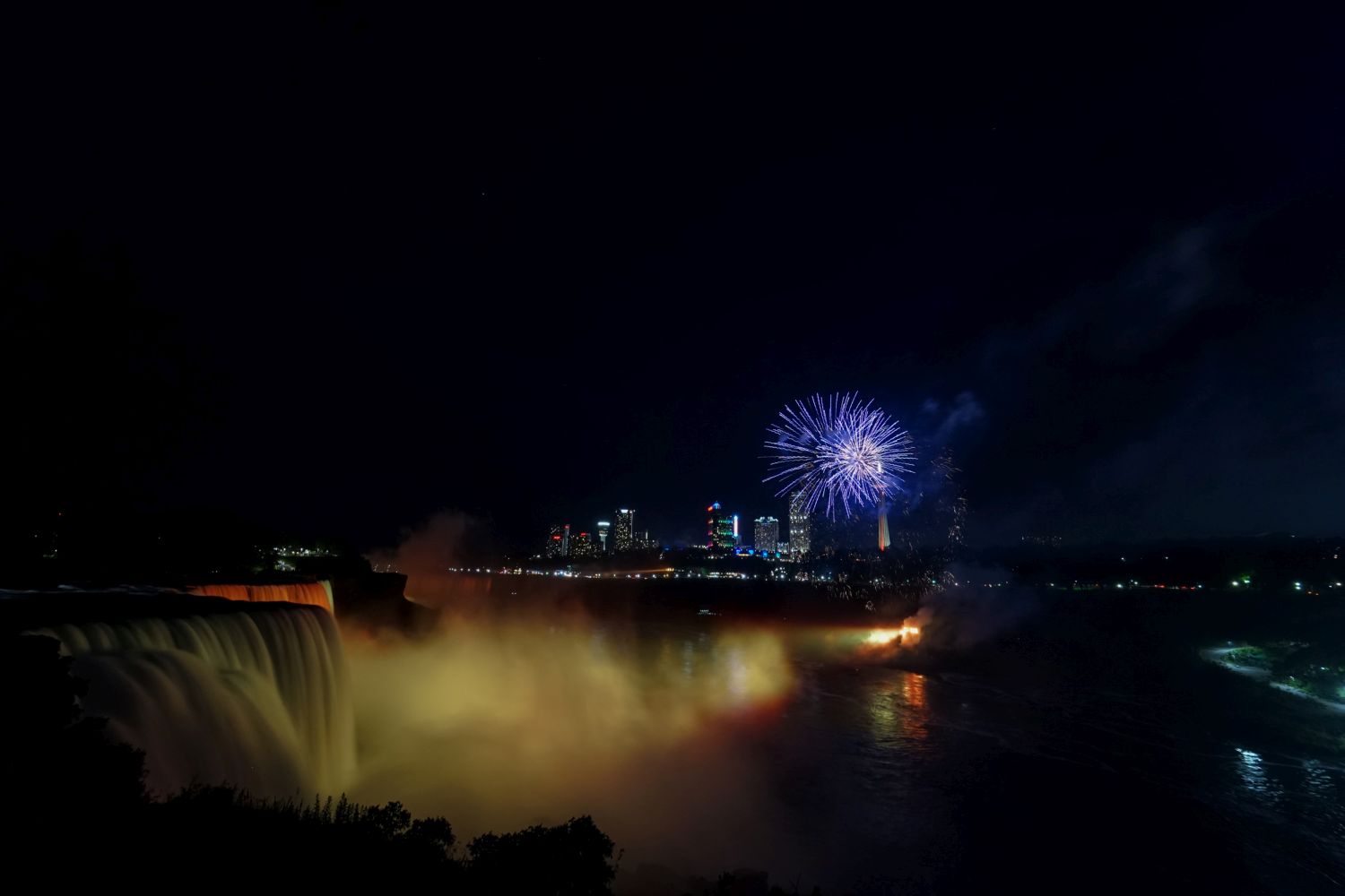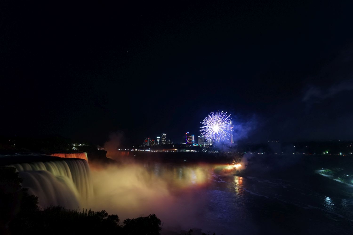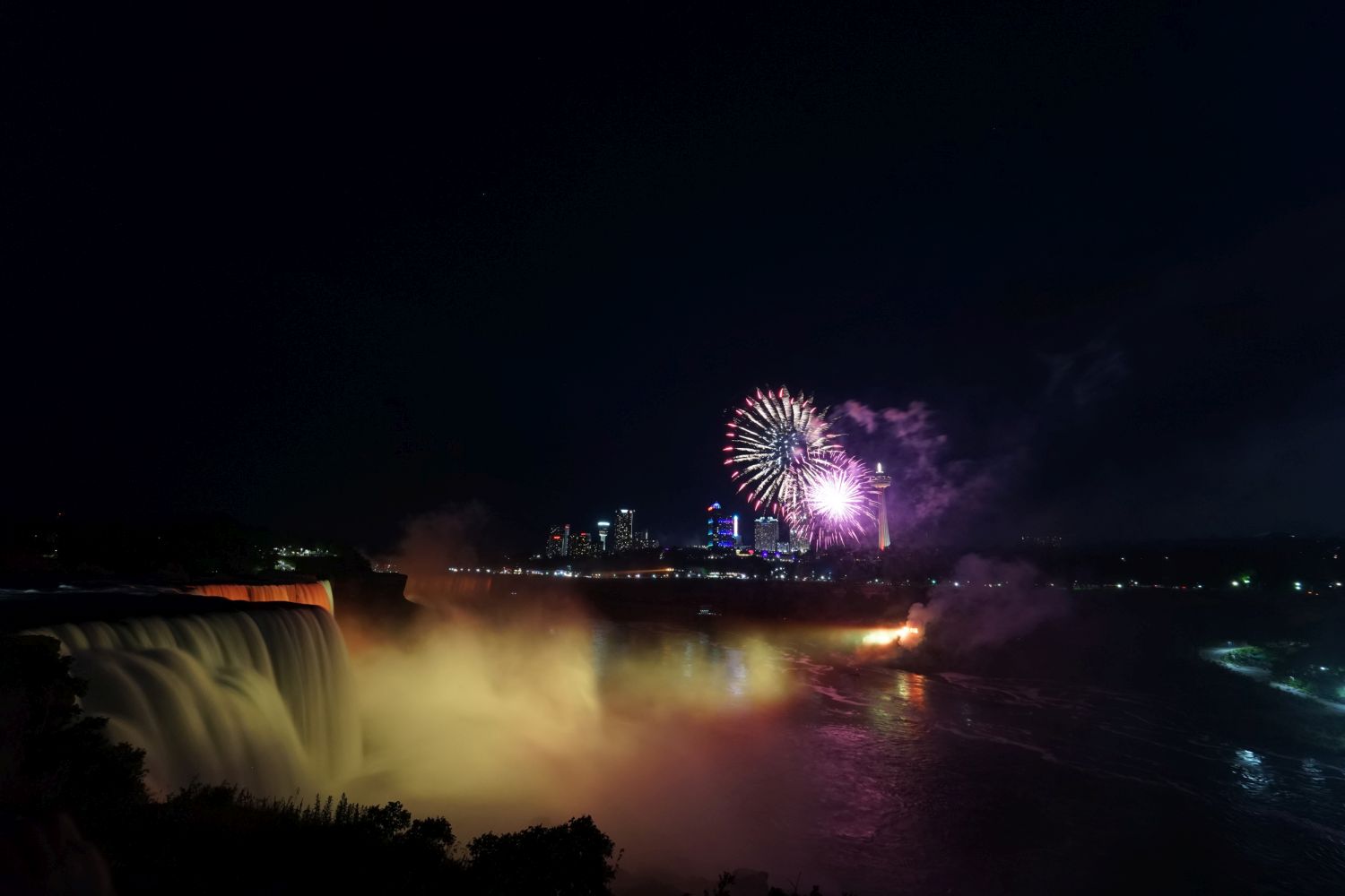 Da Philip erst am nächsten Tag im Ort eintreffen sollte machte ich kurz noch ein paar Einkäufe und stiefelte schon mal zu den Wasserfällen. Diese werden ab etwa 20 Uhr farbig beleuchtet und in der Hauptsaison, die glücklicherweise Mitte Juni beginnt, gibt es Montag bis Freitag gegen 22 Uhr ein Feuerwerk. Da ich über den Tag hinweg eh wenig Fotos gemacht hatte wollte ich noch ein paar schöne Nachtaufnahmen des Feuerwerks und der Wasserfälle schießen.
