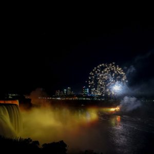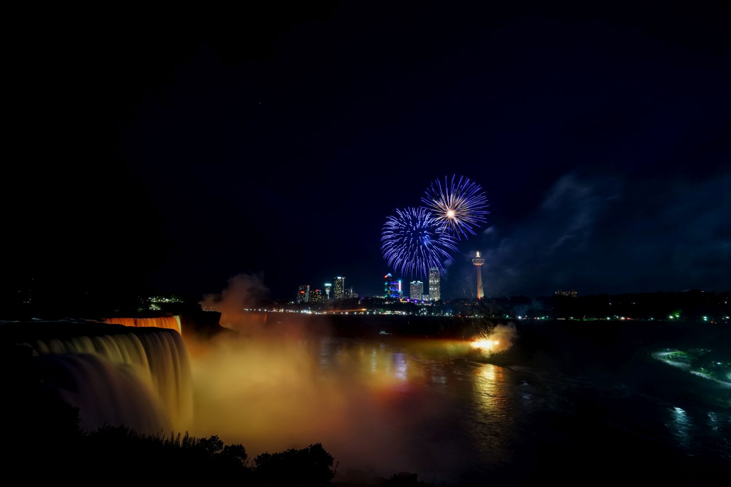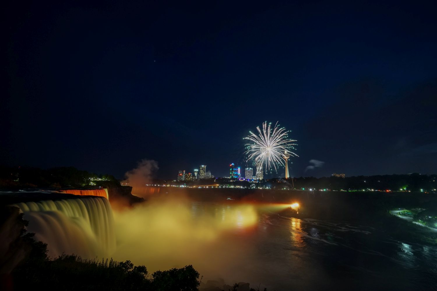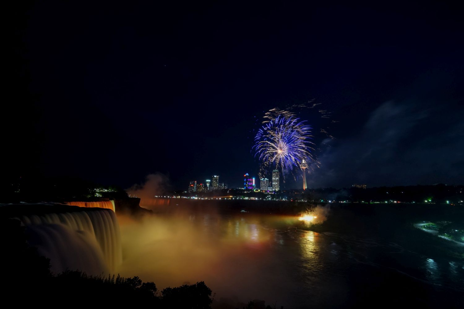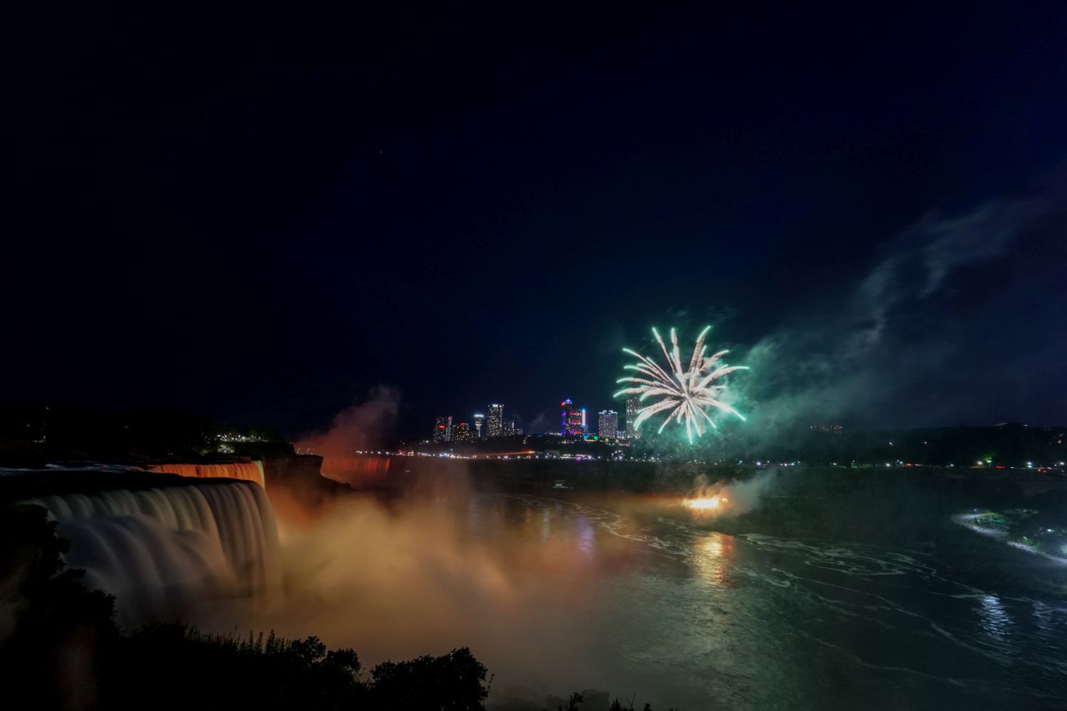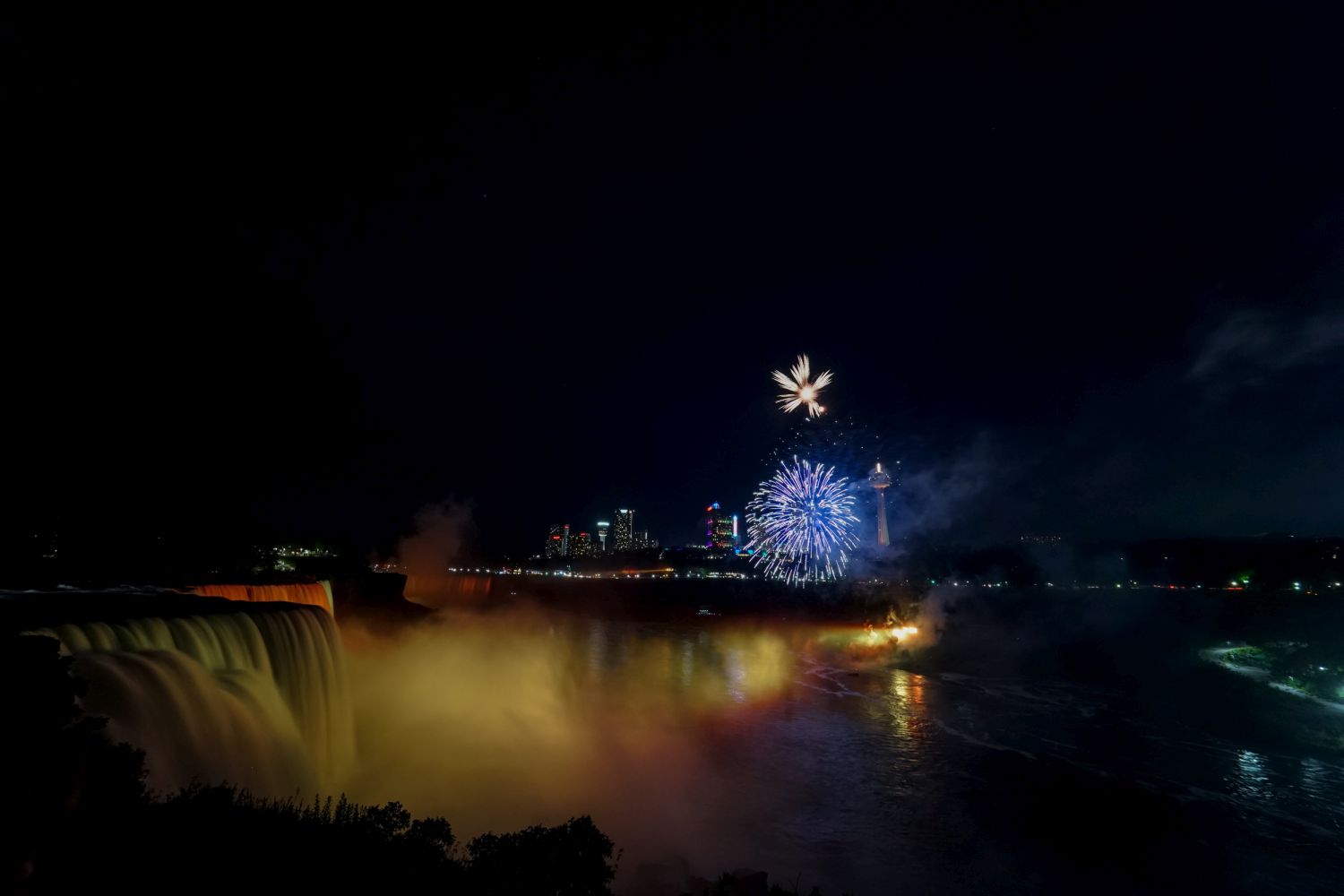 Da Philip erst am nächsten Tag im Ort eintreffen sollte machte ich kurz noch ein paar Einkäufe und stiefelte schon mal zu den Wasserfällen. Diese werden ab etwa 20 Uhr farbig beleuchtet und in der Hauptsaison, die glücklicherweise Mitte Juni beginnt, gibt es Montag bis Freitag gegen 22 Uhr ein Feuerwerk. Da ich über den Tag hinweg eh wenig Fotos gemacht hatte wollte ich noch ein paar schöne Nachtaufnahmen des Feuerwerks und der Wasserfälle schießen.