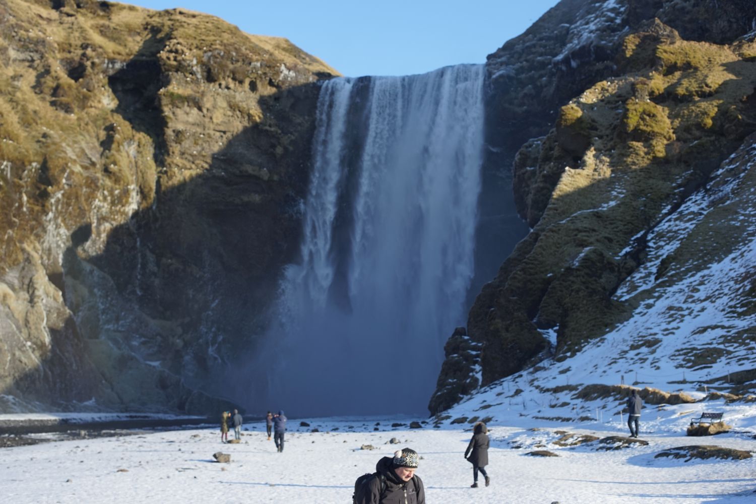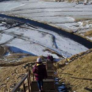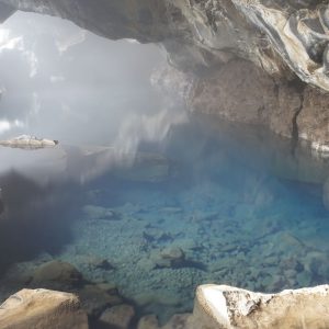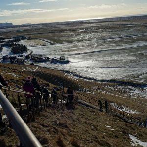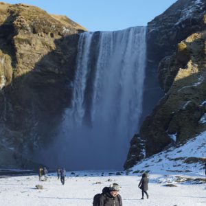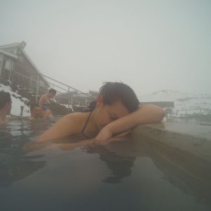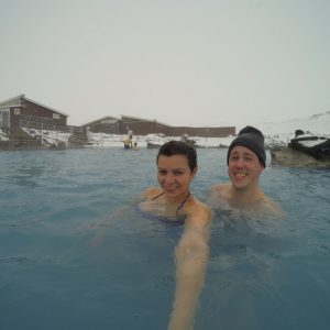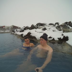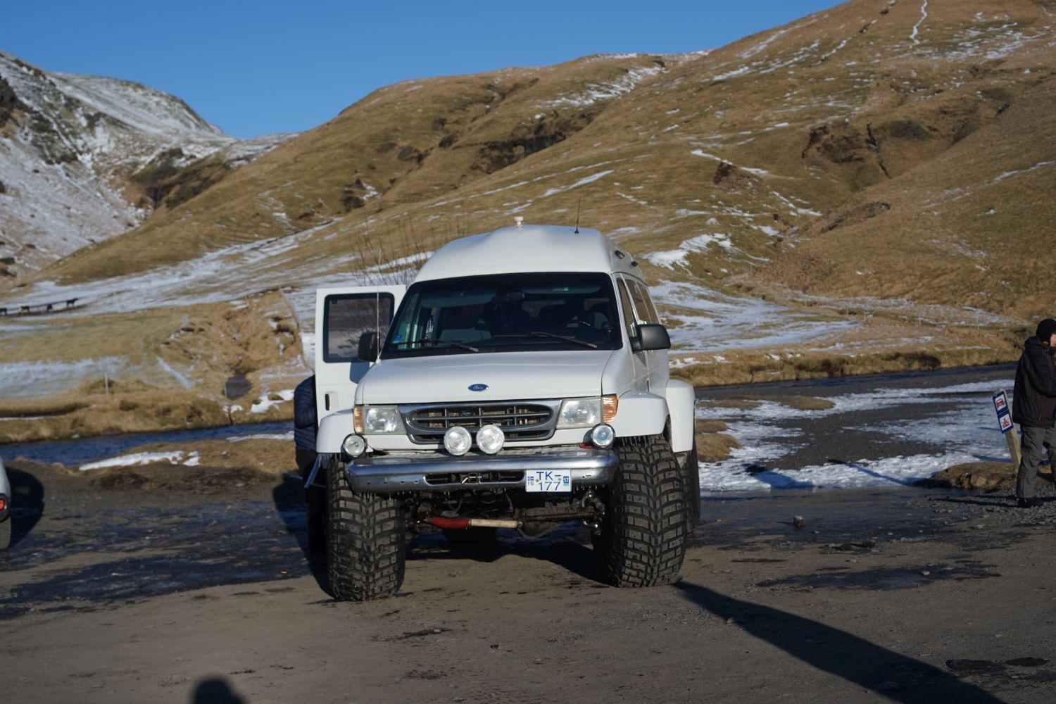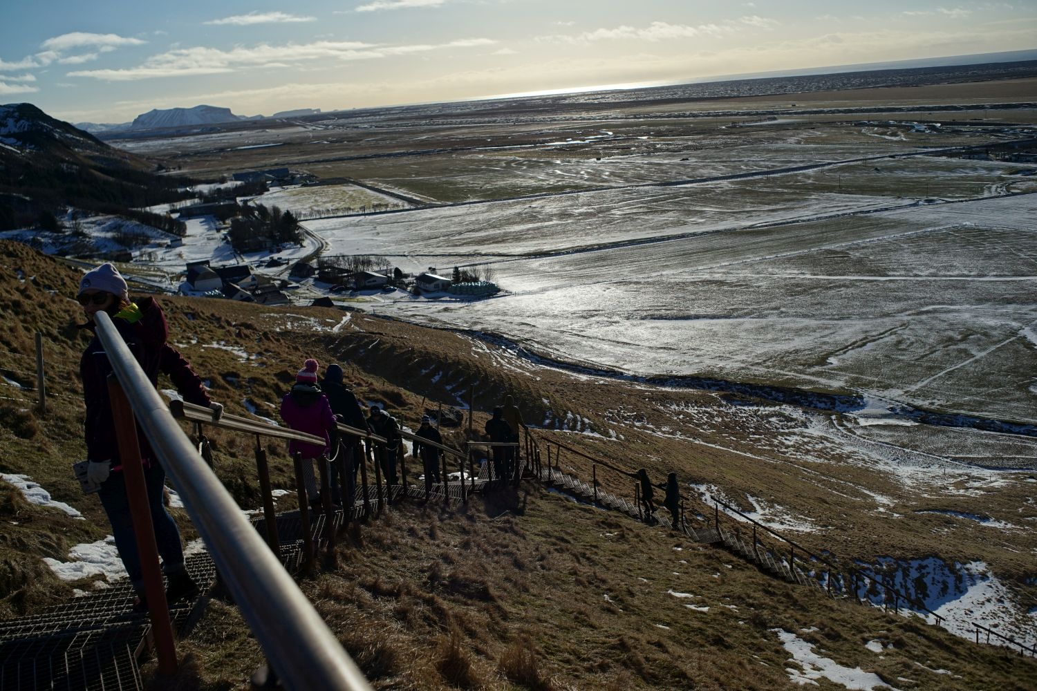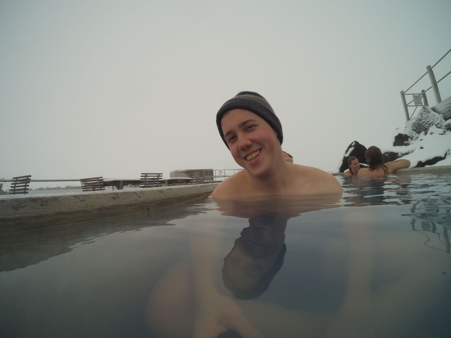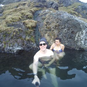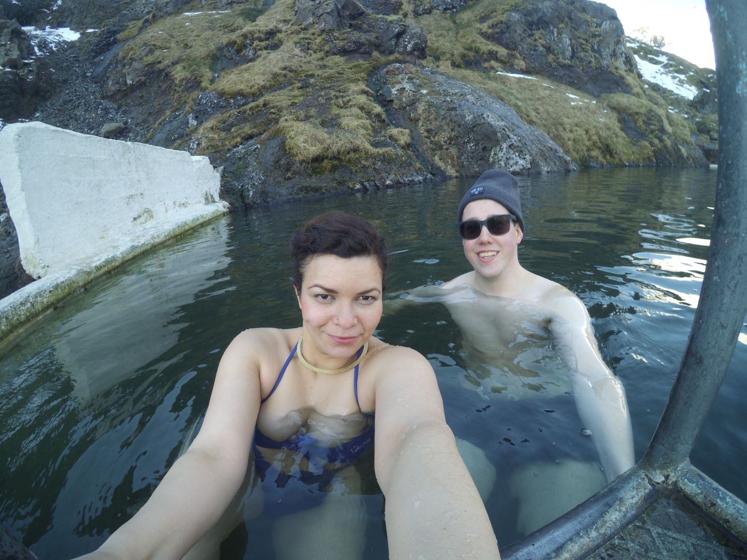 Heute Stand die nächste Etappe in Richtung Selfoss an. Die Ringstraße führte uns heute am Wasserfall Skógafoss vorbei. Im Anschluss besuchten wir einen versteckten Pool, der von einer heißen Quelle gespeist wird und vom Erbauer direkt an die Bergwand gebaut wurde, um eine Außenwand einzusparen. Der Weg dort hin war doch recht abenteuerlich, da der Pool wirklich mitten im Nirgendwo gelegen ist und ein reißender Bergbach überwunden werden muss. Leider war die provisorische Holzbrücke über den Bach halb davon gespült worden, was die Überquerung zu einem Drahtseilakt machte. Der beschwerliche Weg schreckt glücklicherweise die meisten Touristen ab, sodass wir den Pool fast für uns allein hatten. Das Immunsystem wurde nach dem Baden im lauwarmen Wasser durch das Anziehen bei Eiseskälte noch mal gestärkt bevor es weiter zum nächsten Wasserfall und anschließend nach Selfoss ins Hostel ging.