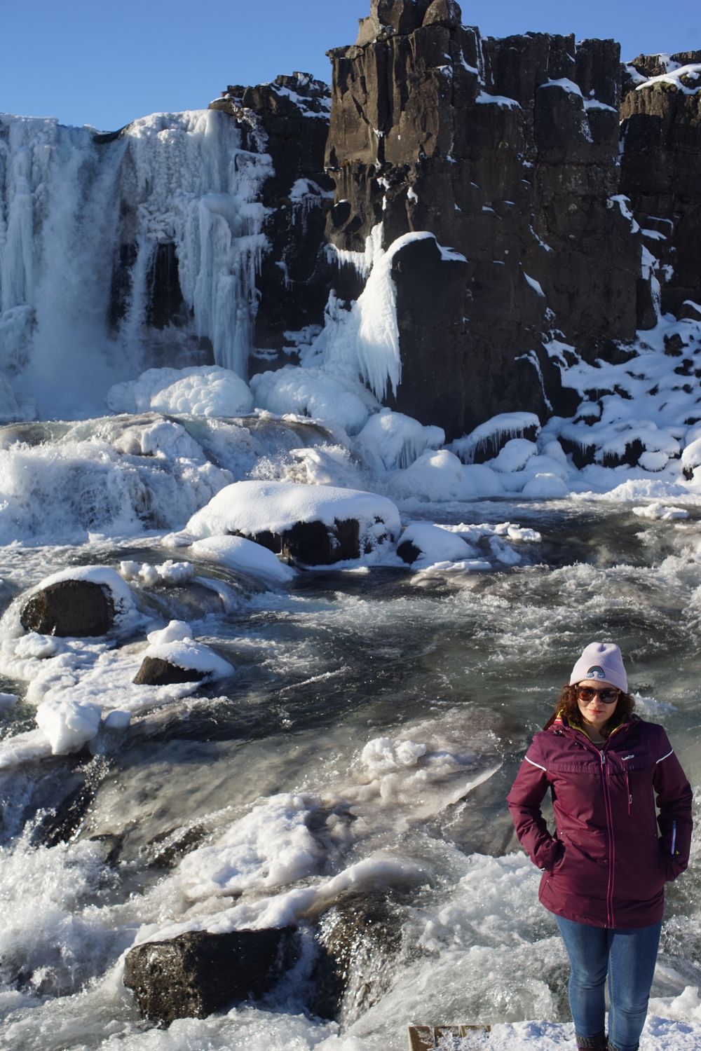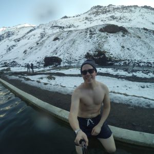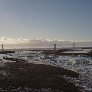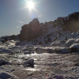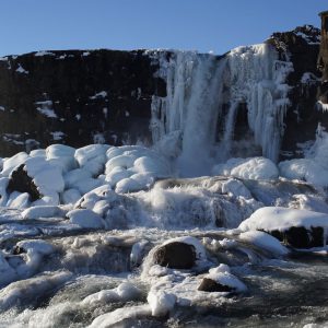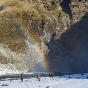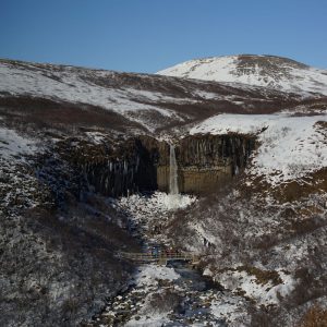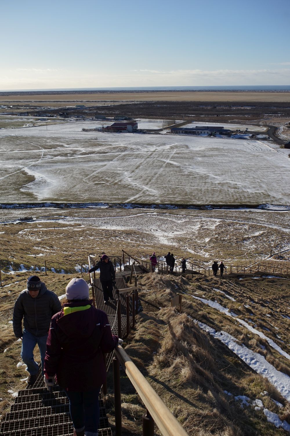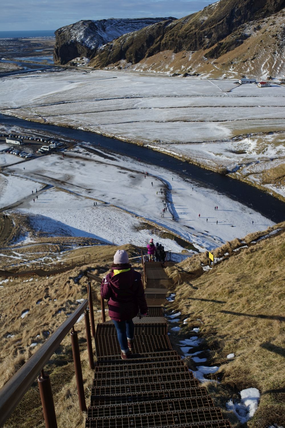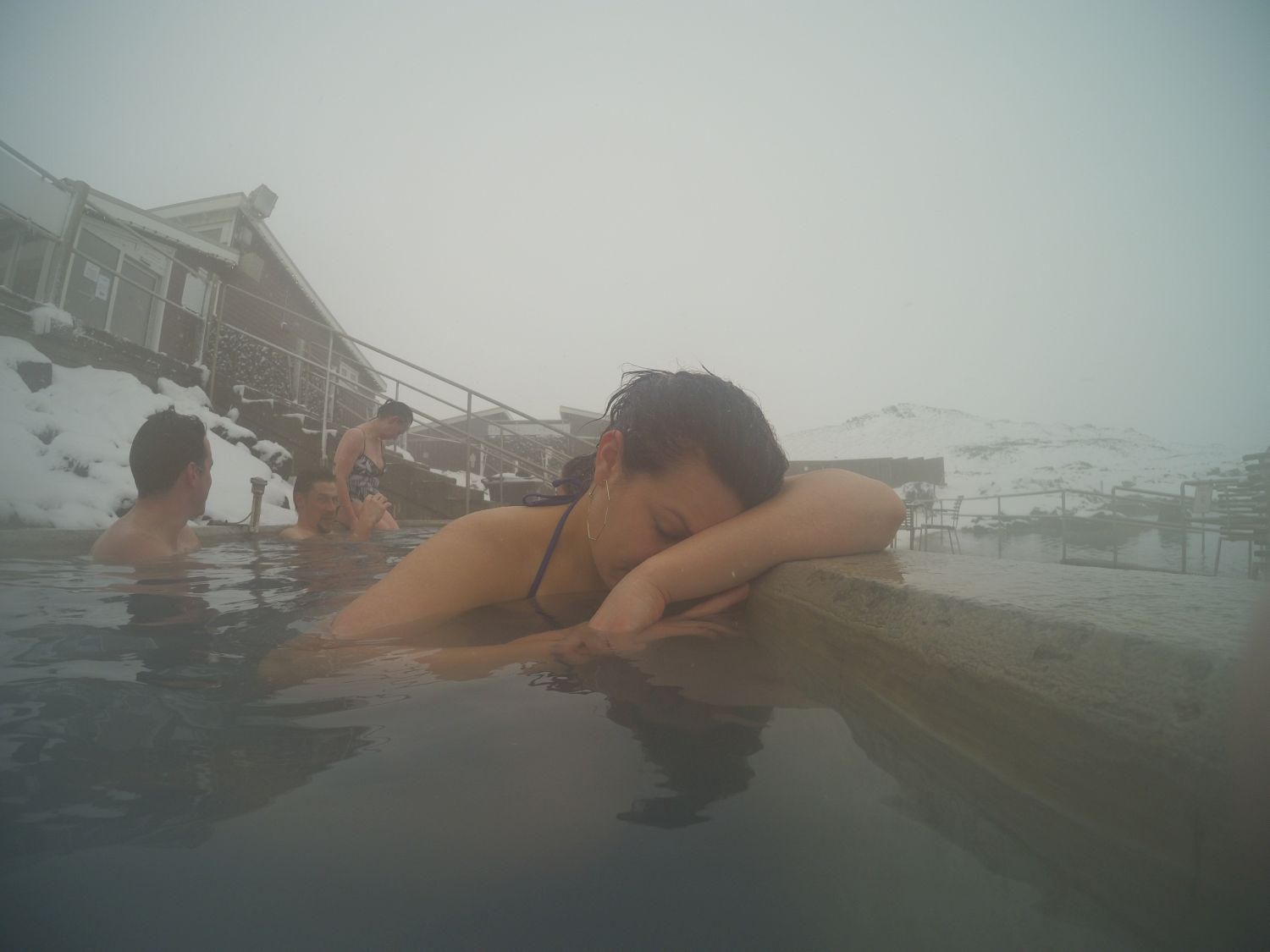 Heute Stand die nächste Etappe in Richtung Selfoss an. Die Ringstraße führte uns heute am Wasserfall Skógafoss vorbei. Im Anschluss besuchten wir einen versteckten Pool, der von einer heißen Quelle gespeist wird und vom Erbauer direkt an die Bergwand gebaut wurde, um eine Außenwand einzusparen. Der Weg dort hin war doch recht abenteuerlich, da der Pool wirklich mitten im Nirgendwo gelegen ist und ein reißender Bergbach überwunden werden muss. Leider war die provisorische Holzbrücke über den Bach halb davon gespült worden, was die Überquerung zu einem Drahtseilakt machte. Der beschwerliche Weg schreckt glücklicherweise die meisten Touristen ab, sodass wir den Pool fast für uns allein hatten. Das Immunsystem wurde nach dem Baden im lauwarmen Wasser durch das Anziehen bei Eiseskälte noch mal gestärkt bevor es weiter zum nächsten Wasserfall und anschließend nach Selfoss ins Hostel ging.