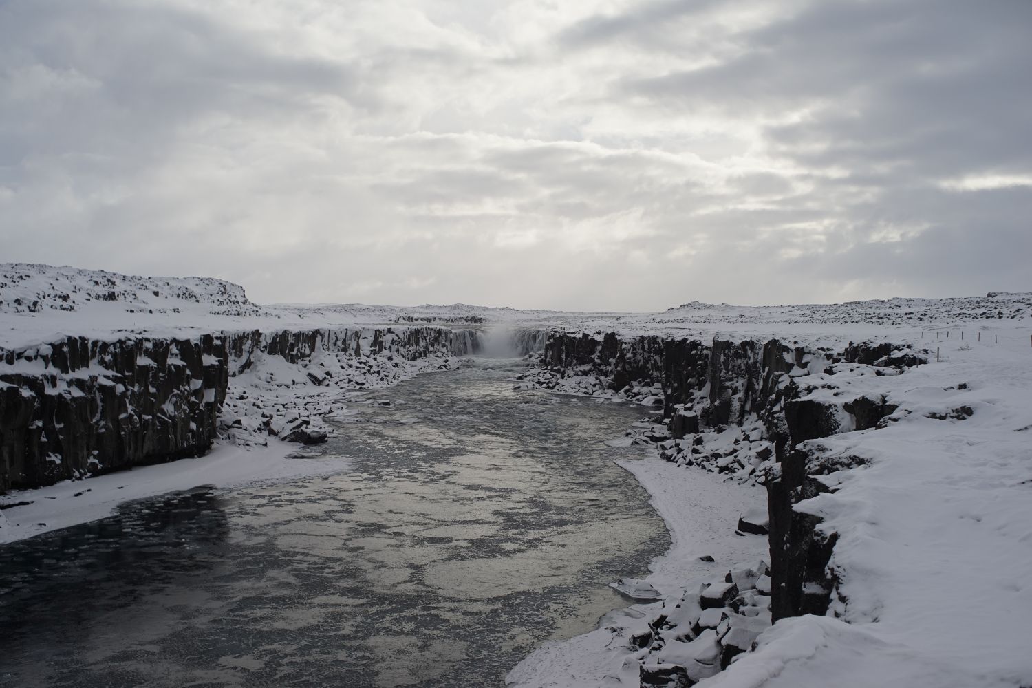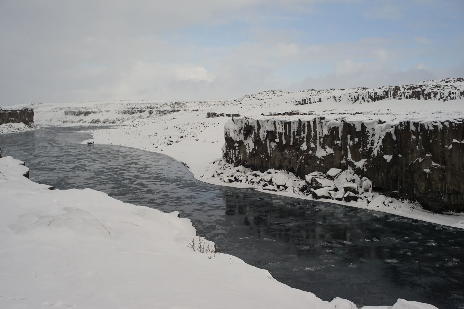 Da das Wetter besser geworden war, versuchten wir unser Glück zunächst wieder an der Grotte und konnten dort ungestört ein paar Bilder machen, um dann weiter zum nächsten Wasserfall zu fahren. Nach einem Aufenthalt bei Dettifoss fuhren wir dann an die Ostküste in den Hafenort Seyðisfjörður von dem regelmäßig Fähren nach Norwegen fahren.