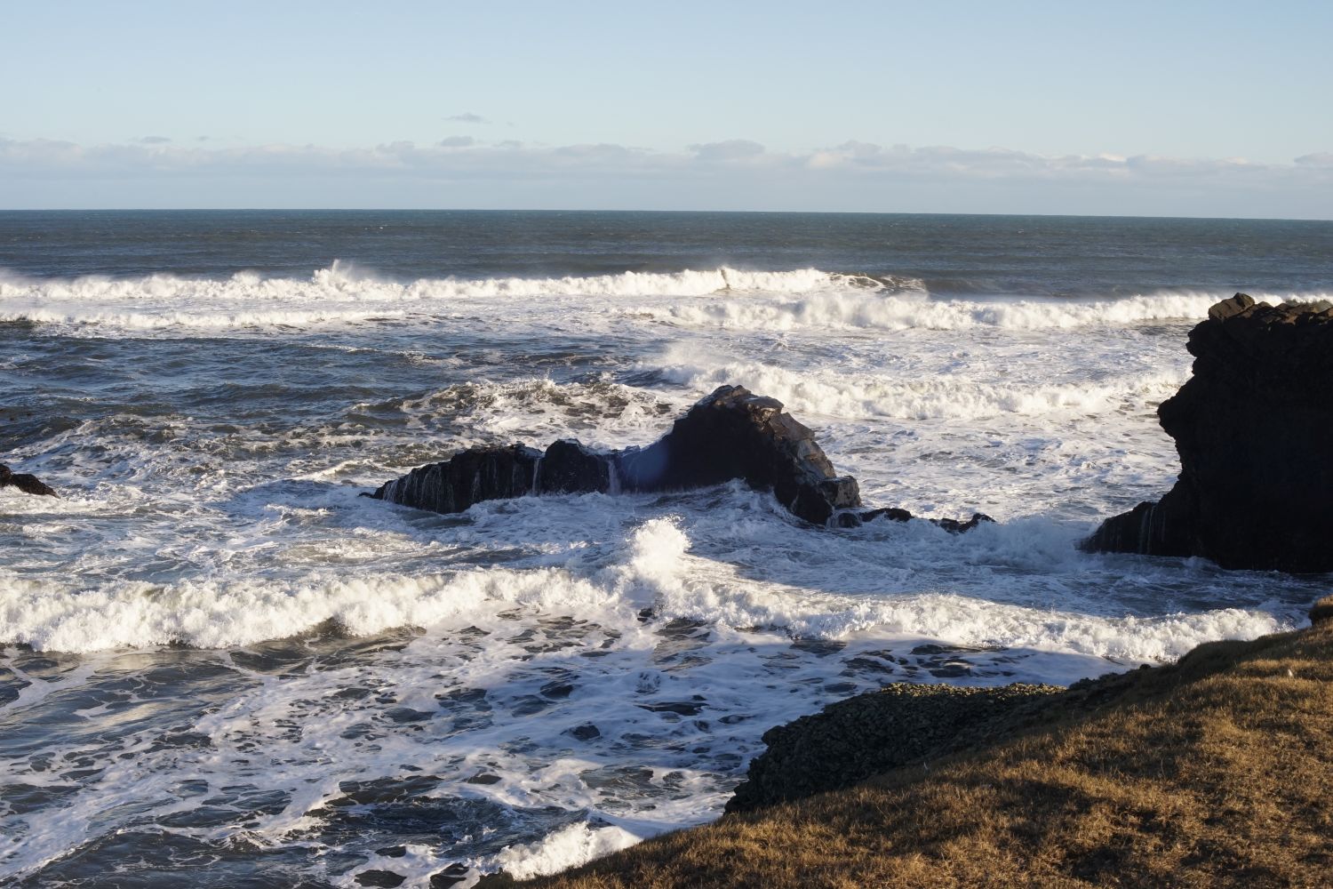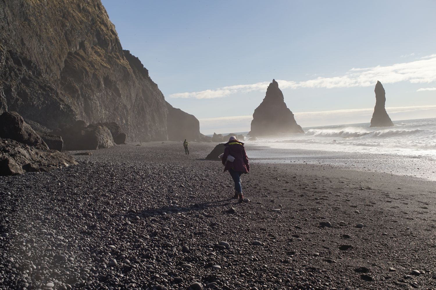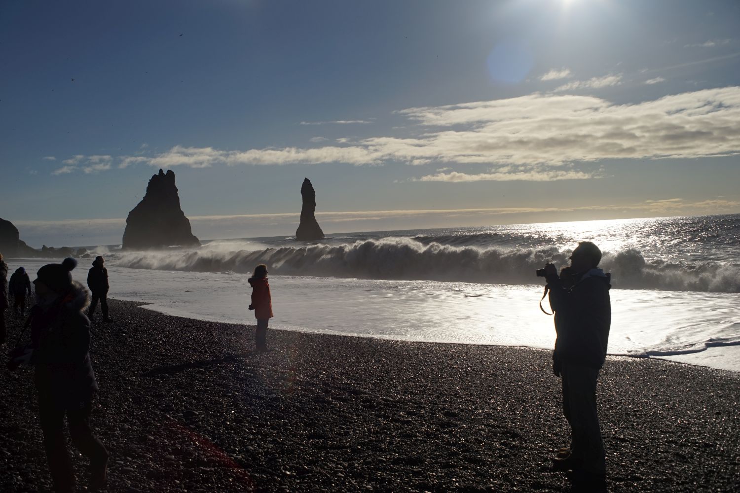 Als erste Attraktion stand heute der schwarze Strand auf dem Programm. Hier hatten wir neben dem tollen Wetter vor allem an den anderen Touristen Spaß. Es gibt etwa ein Dutzend Warnschilder, die vor der rauen See und den hohen Wellen warnen. Trotzdem ist es bei den Touristengruppen sehr beliebt ganz nah an der Brandung Bilder zumachen. Nach dem wir Bilder gemacht hatten lag also unser volles Interesse auf dem Wettlauf zwischen Touristen und Brandung. Zum Teil eine echt knappe Angelegenheit. Nach dem wir genug nasse Touris gesehen hatten, ging es weiter zum abgelegenen Flugzeugwrack. Welches durch einen 45-minütigen Fußmarsch von der Ringstraße erreichbar ist. Abends ging es dann wieder in unser Hostel in Vik zurück.