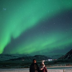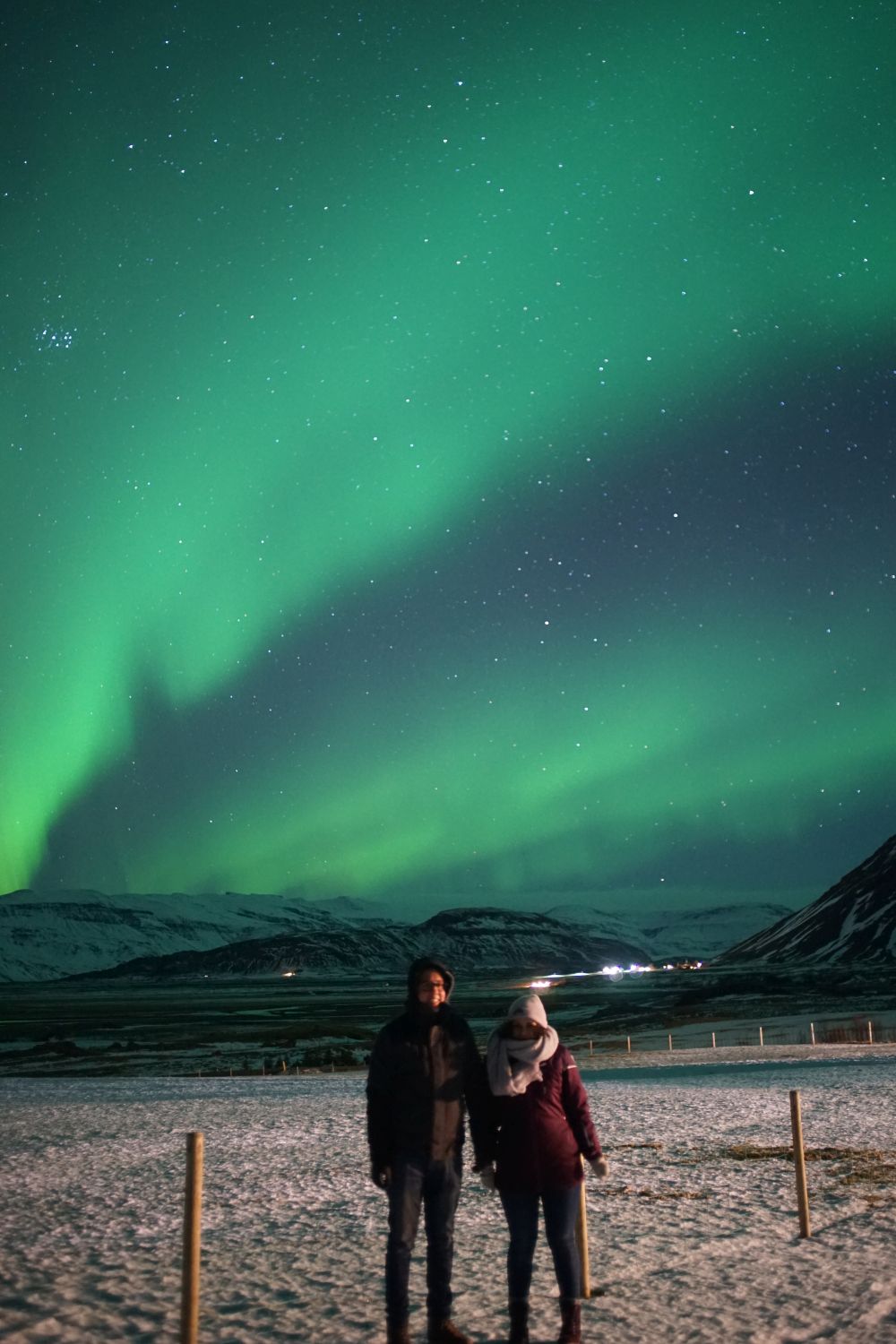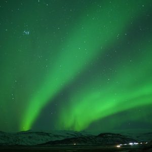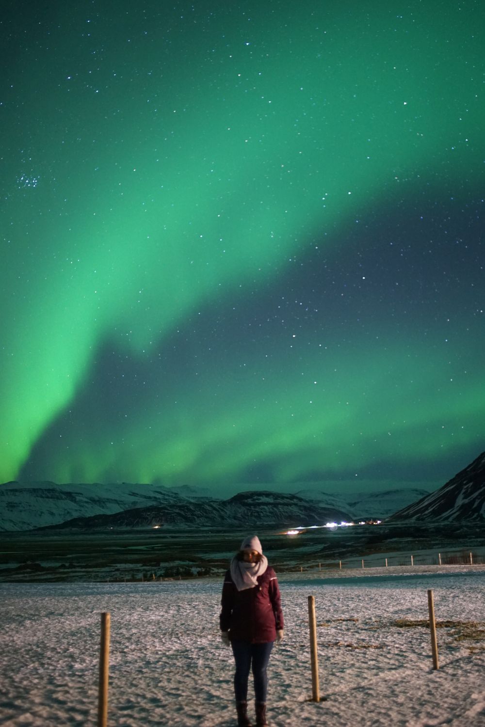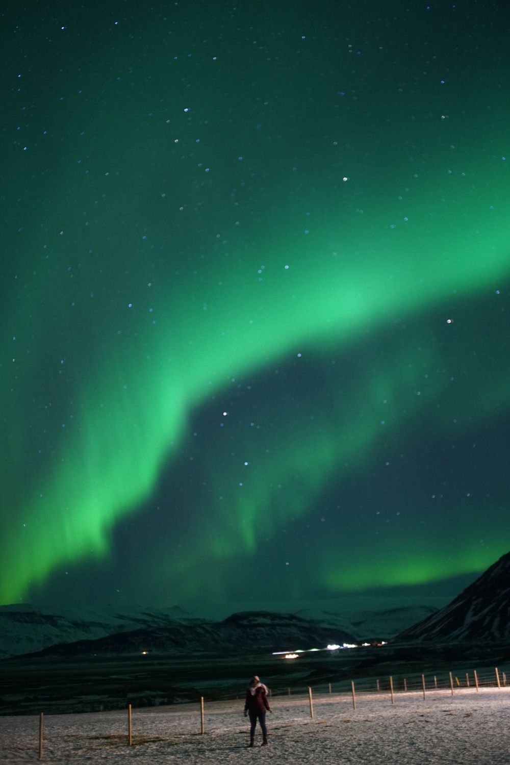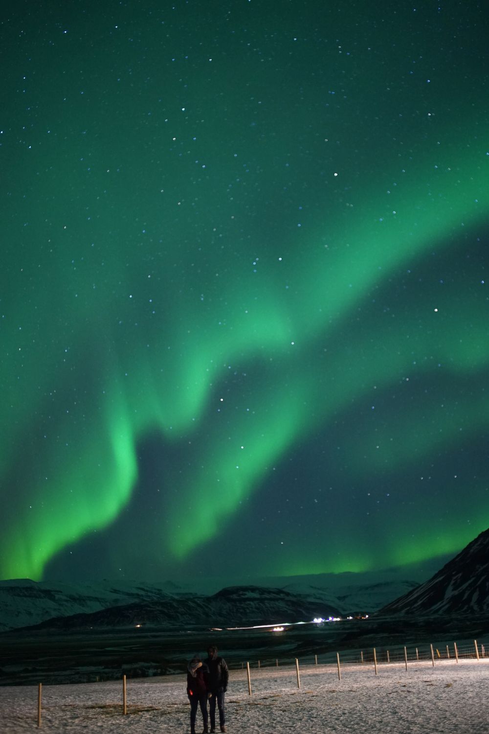 Nach einem morgendlichen Spaziergang durch den Ort ging es zurück über den Bergpass in den Süden von Island. Nach anfänglich durchwachsenem Wetter klarte es schnell auf und wir hatten herrlichen Sonnenschein. Genächtigt wurde in einem kleinen Gästehaus etwa 15 Minuten von Höfn entfernt. Da die Aurora-Vorhersage besonders viel versprechen war, legten wir uns am Küchenfenster auf die Lauer. Gegen halb 12 war es dann endlich so weit und wir konnten die ersten Schleier der Nordlichter am Himmel erkennen. Also schnell Stativ und Kamera zusammengebaut und raus auf das angrenzende Feld. Nach etwa einer drei viertel Stunde war das Spektakel am Himmel zu Ende und wir konnten durchfroren aber glücklich wieder zurück in die warme Unterkunft.