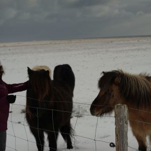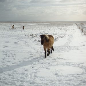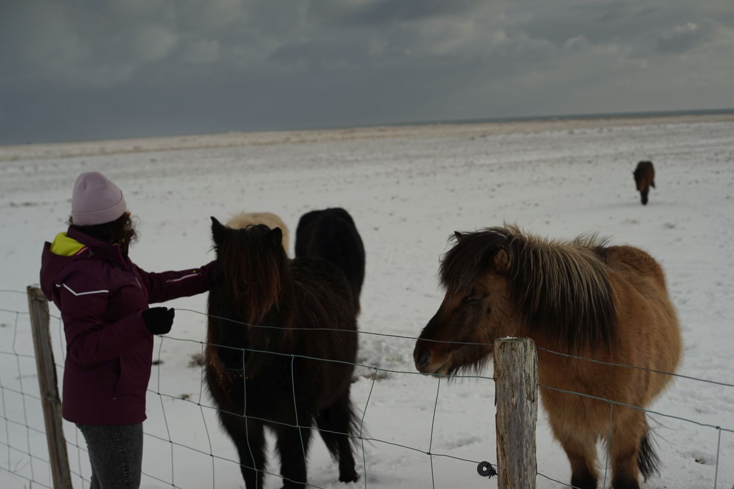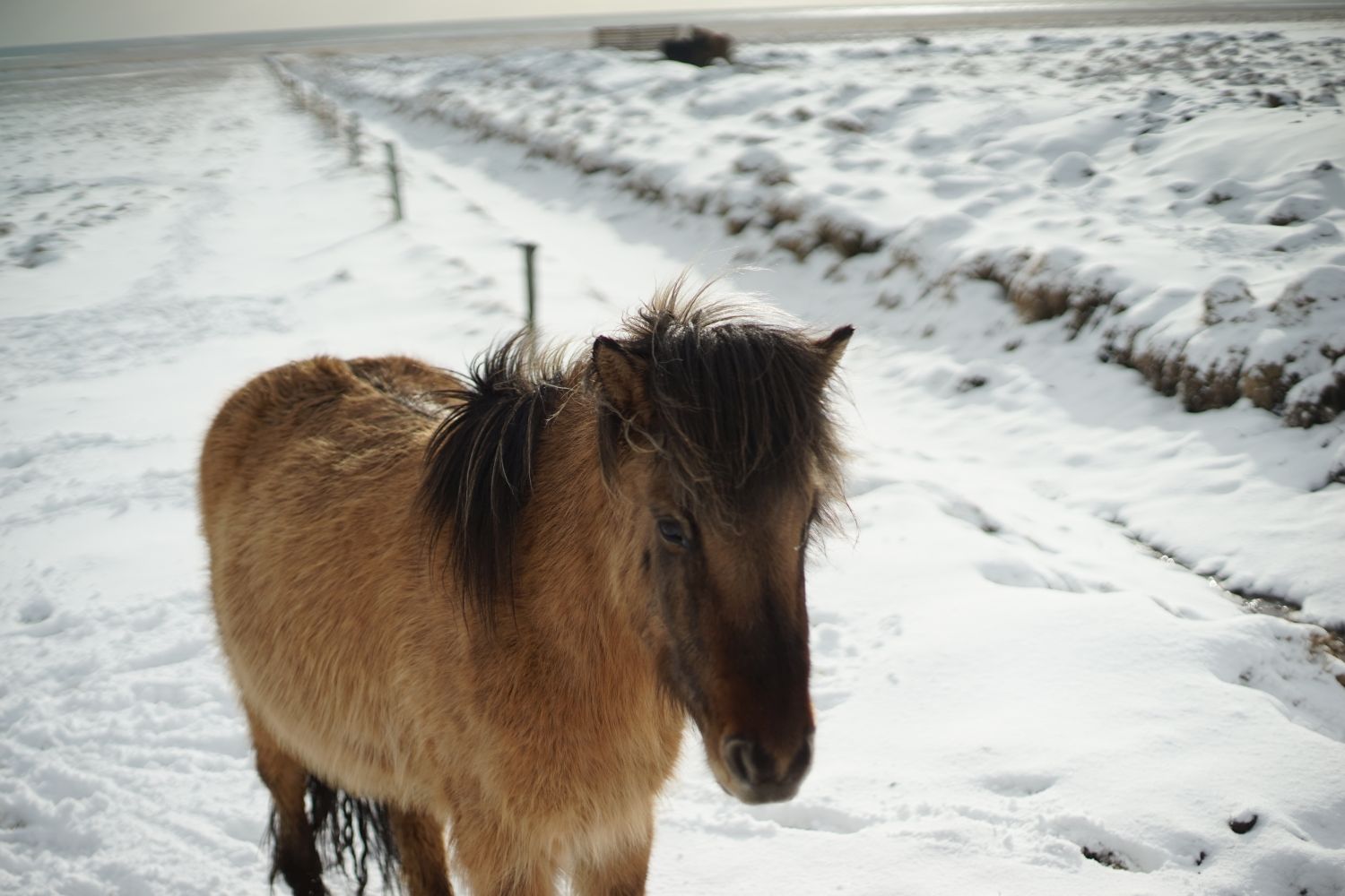 Direkt am Donnerstag startete wir in Richtung Norden, um so die erste Etappe zur Umrundung der Insel hinter uns zu bringen. Auf unserer ersten richtigen Fahrt lernten wir dann auch direkt das typische isländische Wetter kennen. So wechselte das Wetter im 15-Minuten-Rhythmus von Sonnenschein zu Schneeregen und Sturm. Nichtsdestotrotz waren die Straßen gut befahrbar und wir machten zwischen Stopp an der Küste sowie an einer der unzähligen Ponyweiden. Ende von Tag eins war dann im kleinen Fischerort Stykkishólmur, wo wir im Harbour Hostel übernachteten.