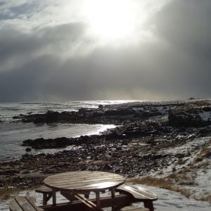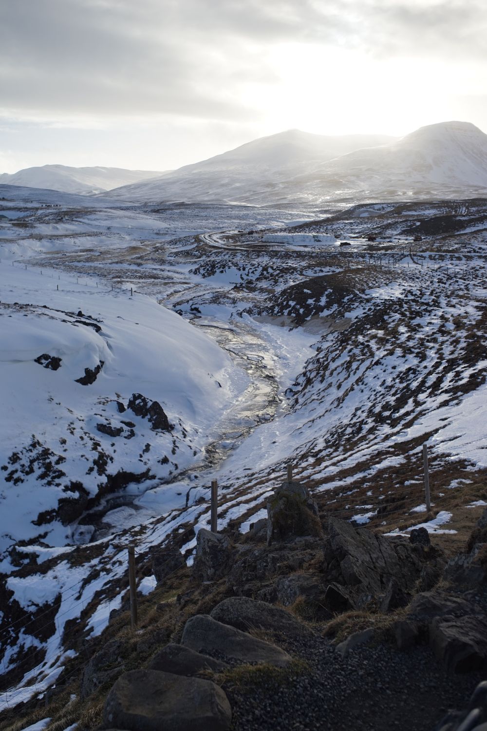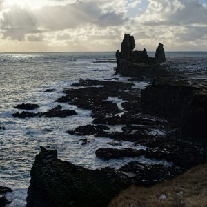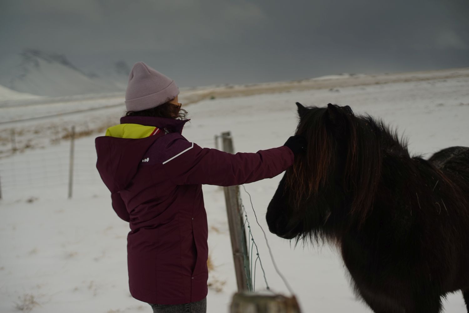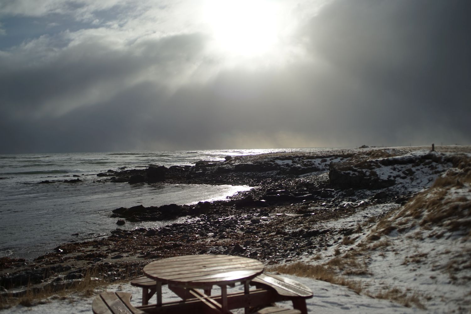 Direkt am Donnerstag startete wir in Richtung Norden, um so die erste Etappe zur Umrundung der Insel hinter uns zu bringen. Auf unserer ersten richtigen Fahrt lernten wir dann auch direkt das typische isländische Wetter kennen. So wechselte das Wetter im 15-Minuten-Rhythmus von Sonnenschein zu Schneeregen und Sturm. Nichtsdestotrotz waren die Straßen gut befahrbar und wir machten zwischen Stopp an der Küste sowie an einer der unzähligen Ponyweiden. Ende von Tag eins war dann im kleinen Fischerort Stykkishólmur, wo wir im Harbour Hostel übernachteten.
