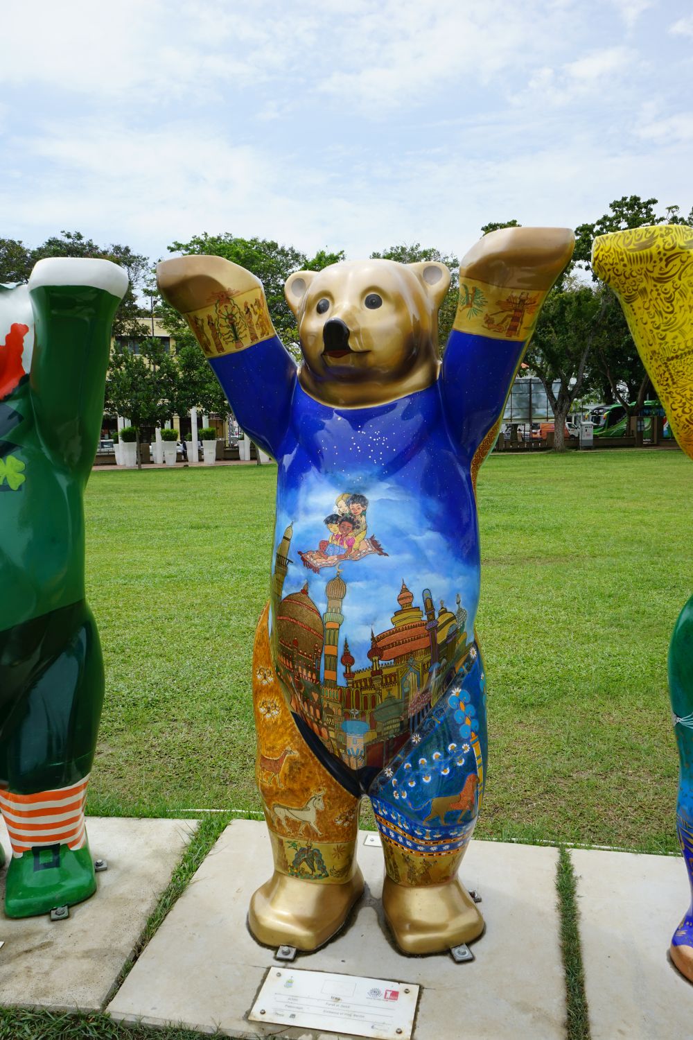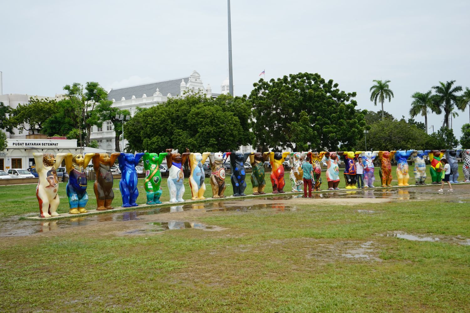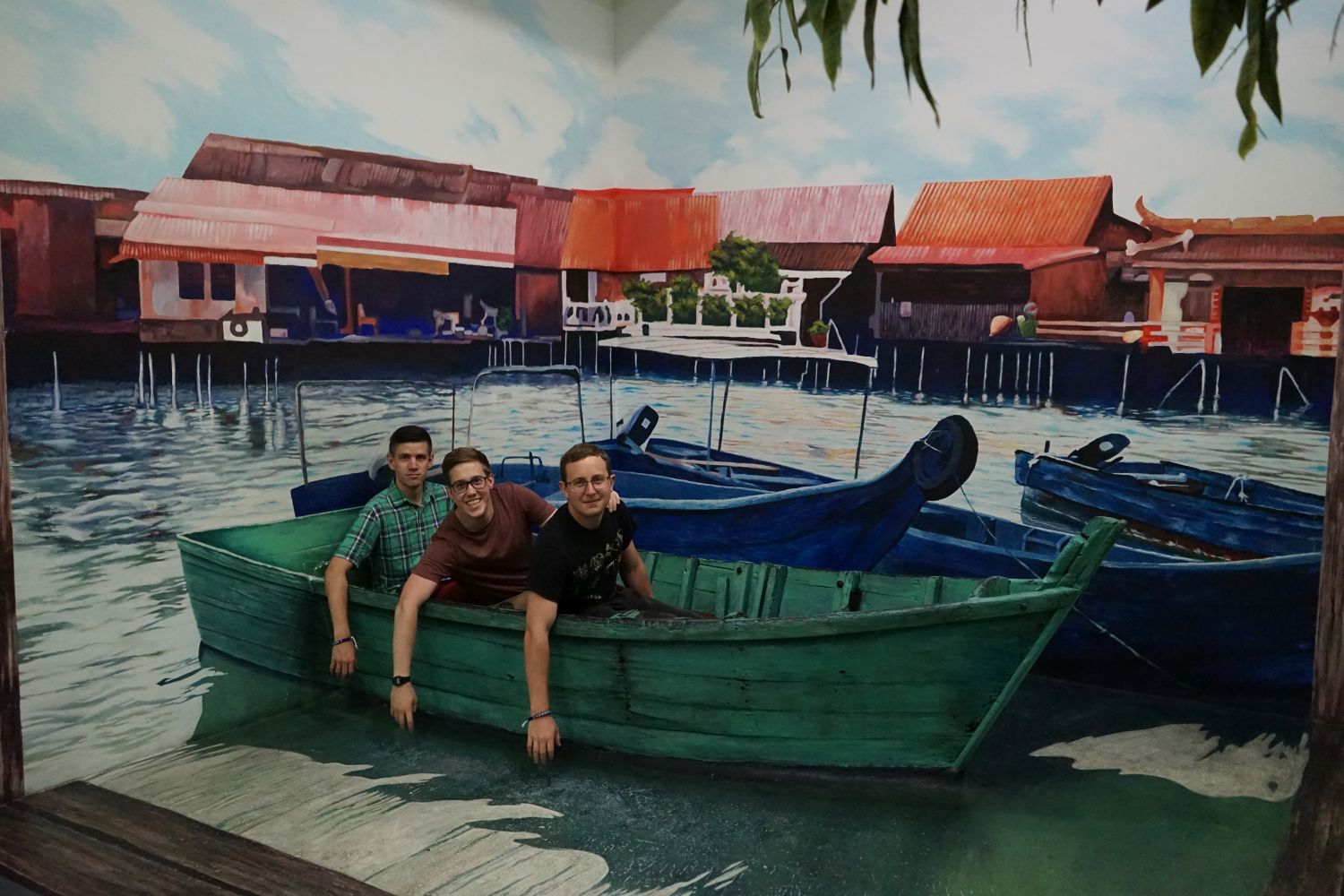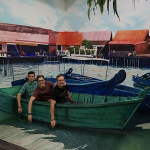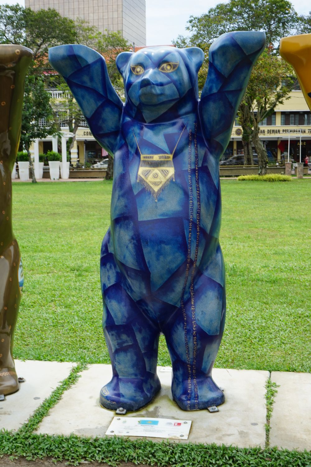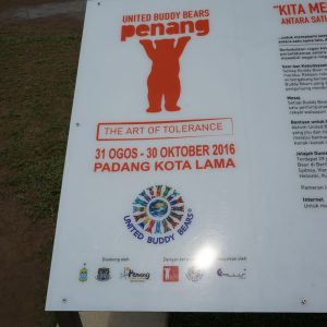 Da es bei unserer gestrigen Ankunft bereits dunkel war sollte heute Penang etwas erkundet werden. Gut 50% der malaysischen Bevölkerung ist dem Islam zugehörig. Dies viel uns bereits zum Sonnenaufgang auf als der erste Muezzin-Ruf ertönte und wir alle aus unseren Betten fielen. Um gegen diese Frühe Ruhestörung Beschwerde einzulegen ging es als erstes in die Moschee auf unserer Straße. Nach einer kurzen Führung sowie einer Gebetsdemonstration verließen wir das Gotteshaus mit einem Paket an Infoflyern für Ungläubige. Durch das indische Viertel führte unsere Weg in Richtung Rathaus vor dem eine Reihe von Berliner-Bären aufgestellt waren. Wir nahmen zu nächst an das es sich hierbei nur um eine zufällige Ähnlichkeit handelte. Es stellte sich dann aber schnell heraus das es hierbei wirklich um eine Aktion eines Berliner Kollektivs handelte und das die einzelnen Bären von den Botschaften der deutschen Hauptstadt gestiftete wurden und jeweils ein Land repräsentieren. Um der heißen Mittagssonne zu entgehen besuchten wir das 3D Trickeye Museum und probierten die ein oder andere optische Täuschung aus. Den kulturellen Pflichtteil des Mittags erledigten wir mit einer Besichtigung der Pinang Peranakan Mansion. Um anschließend zum Hafen zumarschieren von wo es in ein bekanntes Streetart-Viertel ging. Danach Stand das Mittagessen auf dem Programm. Danach begaben wir uns zurück ins Hotel wo wir den Rest des Tages am Pool oder faul im Hotelzimmer verbrachten.