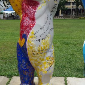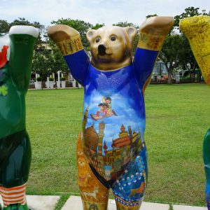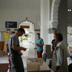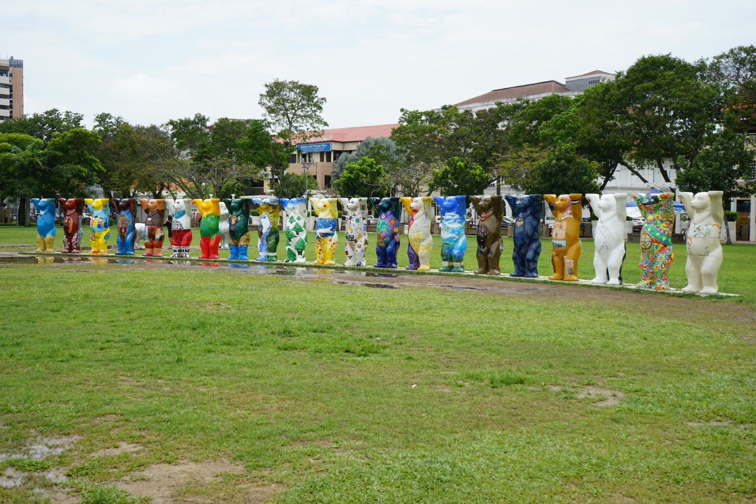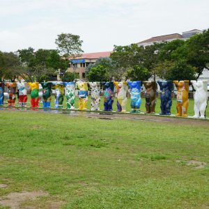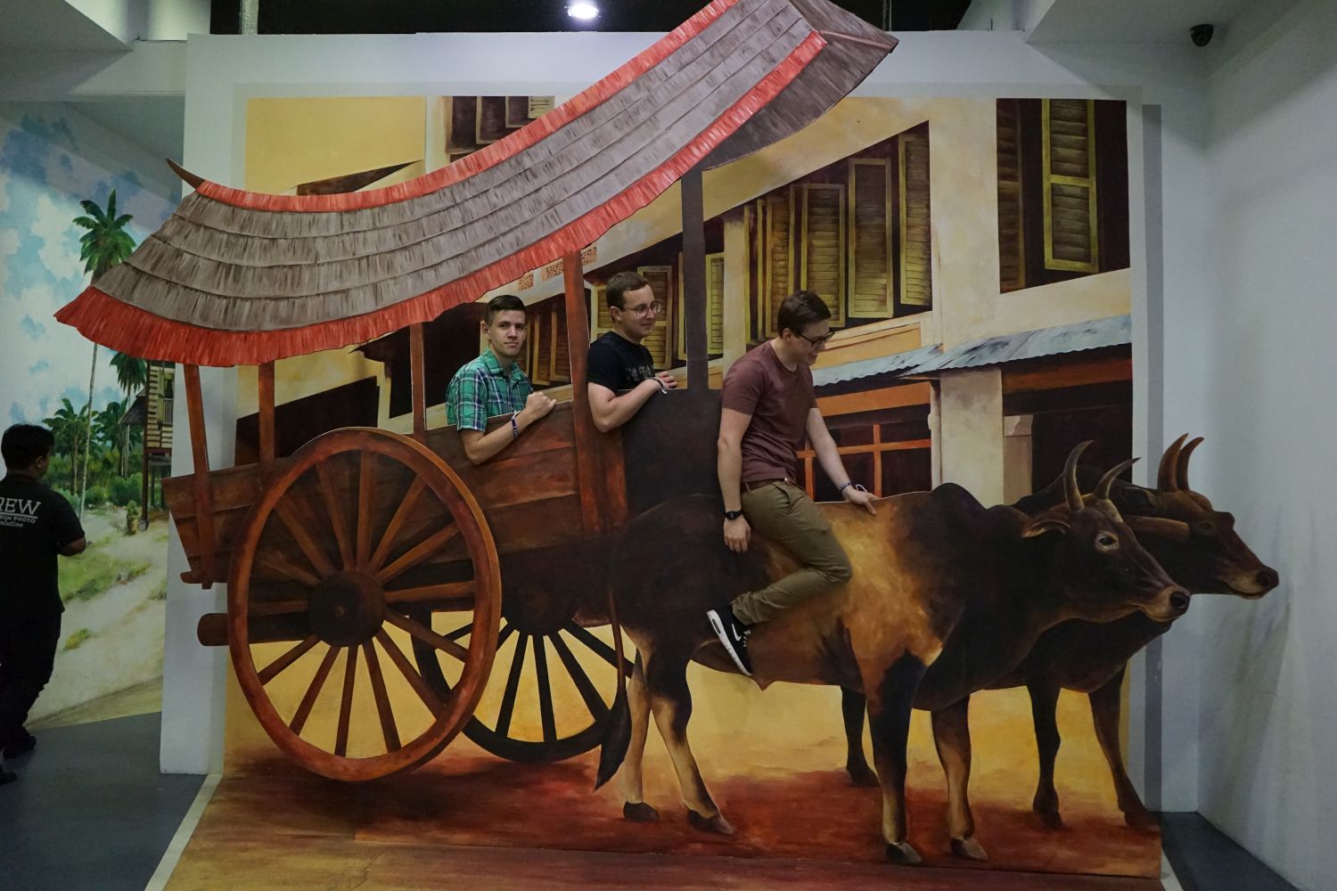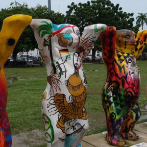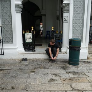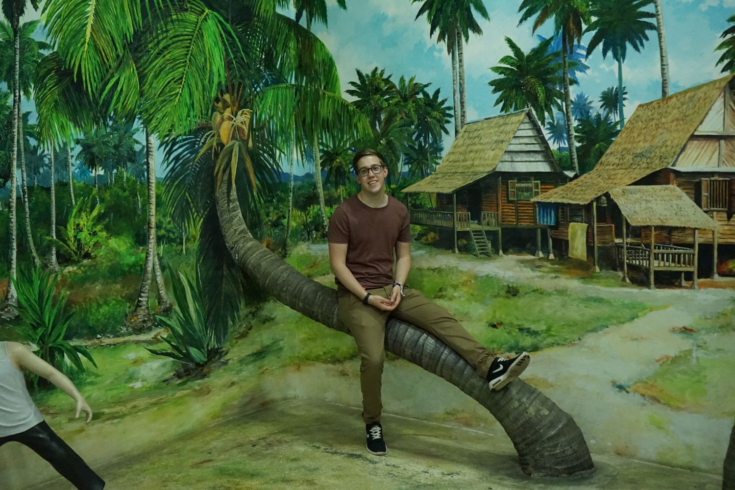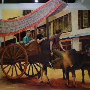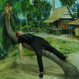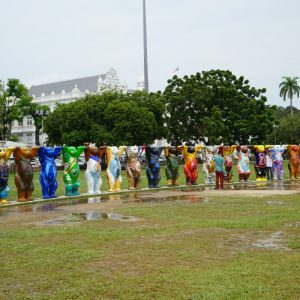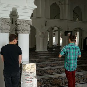 Da es bei unserer gestrigen Ankunft bereits dunkel war sollte heute Penang etwas erkundet werden. Gut 50% der malaysischen Bevölkerung ist dem Islam zugehörig. Dies viel uns bereits zum Sonnenaufgang auf als der erste Muezzin-Ruf ertönte und wir alle aus unseren Betten fielen. Um gegen diese Frühe Ruhestörung Beschwerde einzulegen ging es als erstes in die Moschee auf unserer Straße. Nach einer kurzen Führung sowie einer Gebetsdemonstration verließen wir das Gotteshaus mit einem Paket an Infoflyern für Ungläubige. Durch das indische Viertel führte unsere Weg in Richtung Rathaus vor dem eine Reihe von Berliner-Bären aufgestellt waren. Wir nahmen zu nächst an das es sich hierbei nur um eine zufällige Ähnlichkeit handelte. Es stellte sich dann aber schnell heraus das es hierbei wirklich um eine Aktion eines Berliner Kollektivs handelte und das die einzelnen Bären von den Botschaften der deutschen Hauptstadt gestiftete wurden und jeweils ein Land repräsentieren. Um der heißen Mittagssonne zu entgehen besuchten wir das 3D Trickeye Museum und probierten die ein oder andere optische Täuschung aus. Den kulturellen Pflichtteil des Mittags erledigten wir mit einer Besichtigung der Pinang Peranakan Mansion. Um anschließend zum Hafen zumarschieren von wo es in ein bekanntes Streetart-Viertel ging. Danach Stand das Mittagessen auf dem Programm. Danach begaben wir uns zurück ins Hotel wo wir den Rest des Tages am Pool oder faul im Hotelzimmer verbrachten.