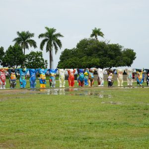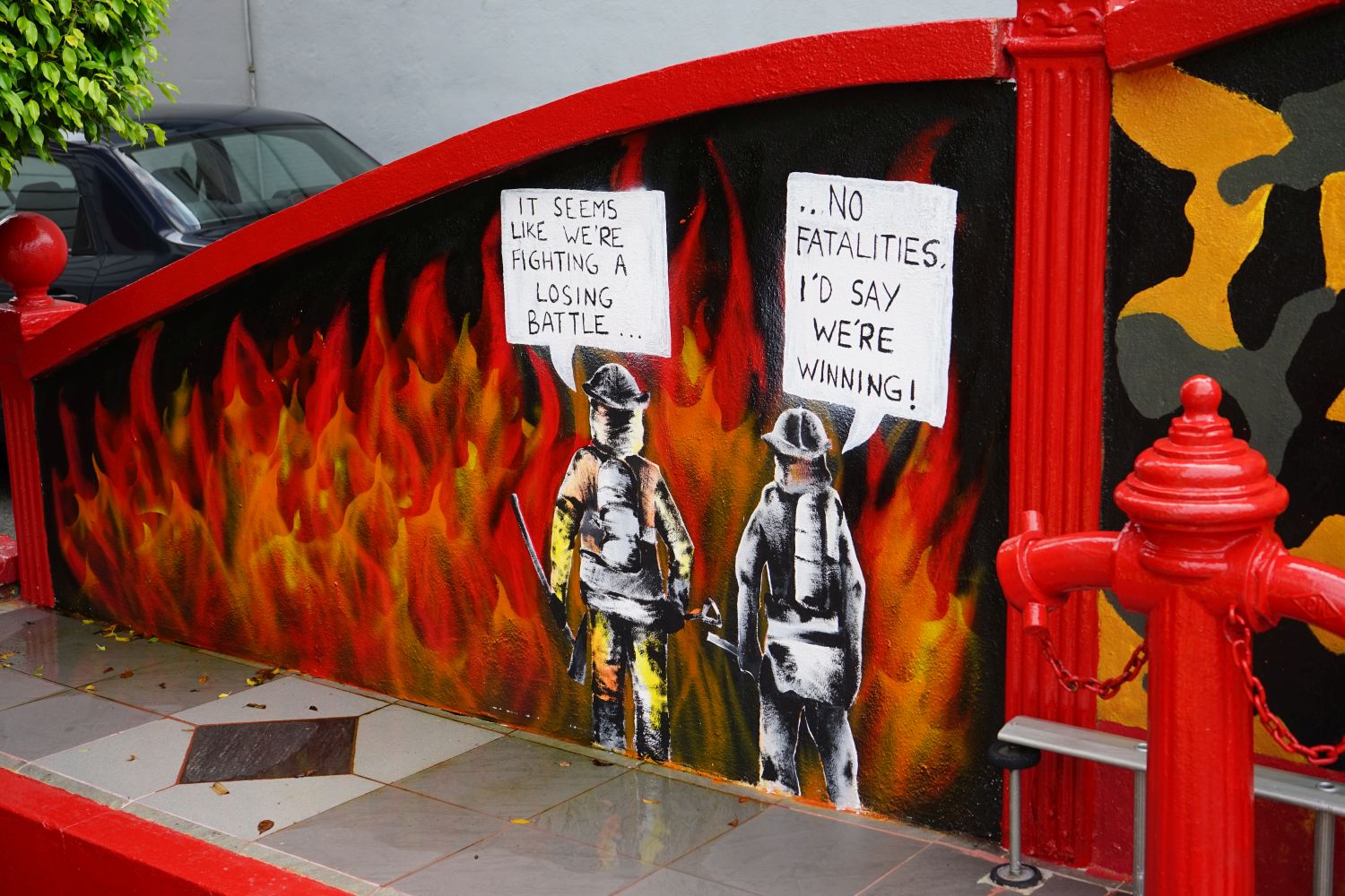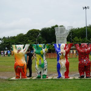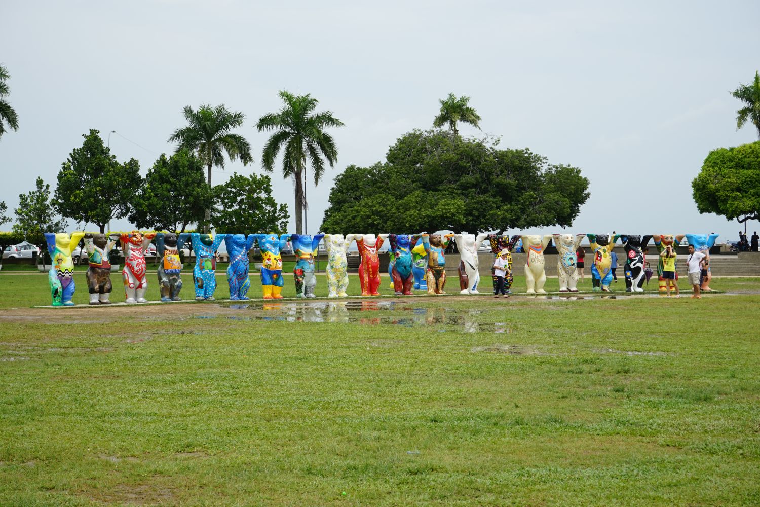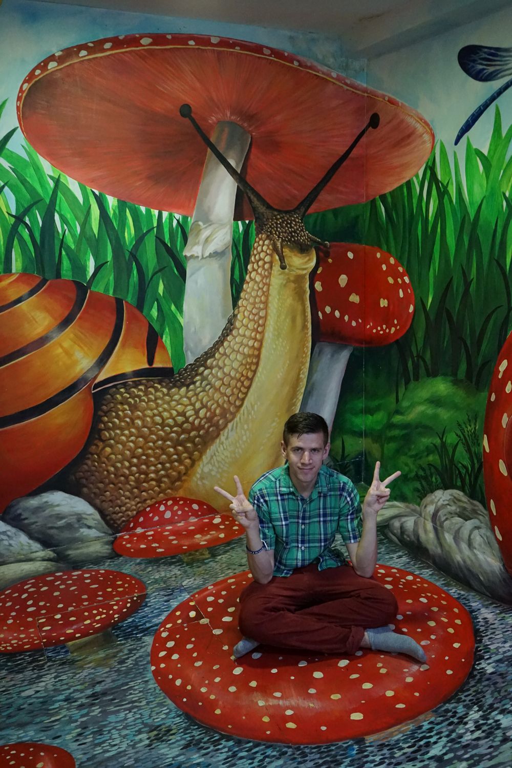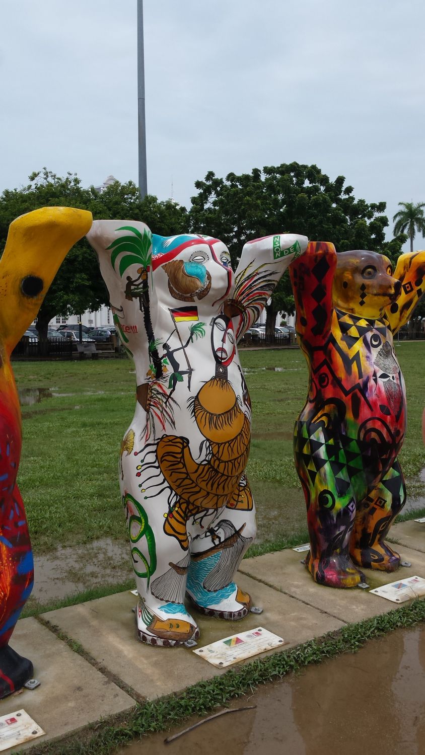 Da es bei unserer gestrigen Ankunft bereits dunkel war sollte heute Penang etwas erkundet werden. Gut 50% der malaysischen Bevölkerung ist dem Islam zugehörig. Dies viel uns bereits zum Sonnenaufgang auf als der erste Muezzin-Ruf ertönte und wir alle aus unseren Betten fielen. Um gegen diese Frühe Ruhestörung Beschwerde einzulegen ging es als erstes in die Moschee auf unserer Straße. Nach einer kurzen Führung sowie einer Gebetsdemonstration verließen wir das Gotteshaus mit einem Paket an Infoflyern für Ungläubige. Durch das indische Viertel führte unsere Weg in Richtung Rathaus vor dem eine Reihe von Berliner-Bären aufgestellt waren. Wir nahmen zu nächst an das es sich hierbei nur um eine zufällige Ähnlichkeit handelte. Es stellte sich dann aber schnell heraus das es hierbei wirklich um eine Aktion eines Berliner Kollektivs handelte und das die einzelnen Bären von den Botschaften der deutschen Hauptstadt gestiftete wurden und jeweils ein Land repräsentieren. Um der heißen Mittagssonne zu entgehen besuchten wir das 3D Trickeye Museum und probierten die ein oder andere optische Täuschung aus. Den kulturellen Pflichtteil des Mittags erledigten wir mit einer Besichtigung der Pinang Peranakan Mansion. Um anschließend zum Hafen zumarschieren von wo es in ein bekanntes Streetart-Viertel ging. Danach Stand das Mittagessen auf dem Programm. Danach begaben wir uns zurück ins Hotel wo wir den Rest des Tages am Pool oder faul im Hotelzimmer verbrachten.