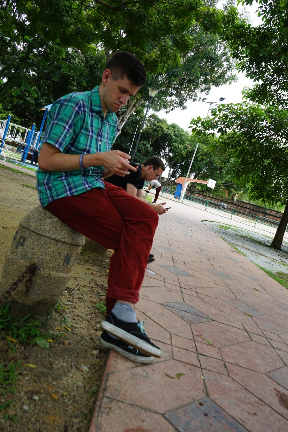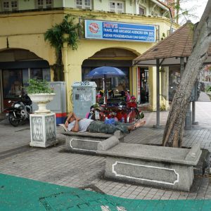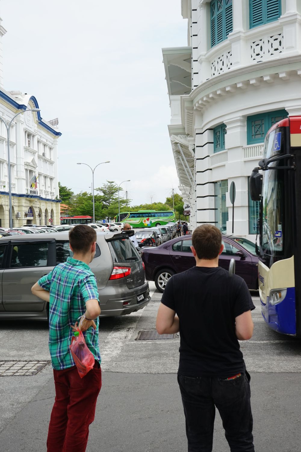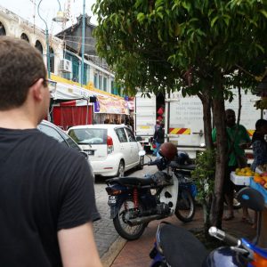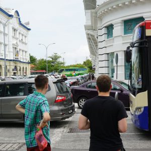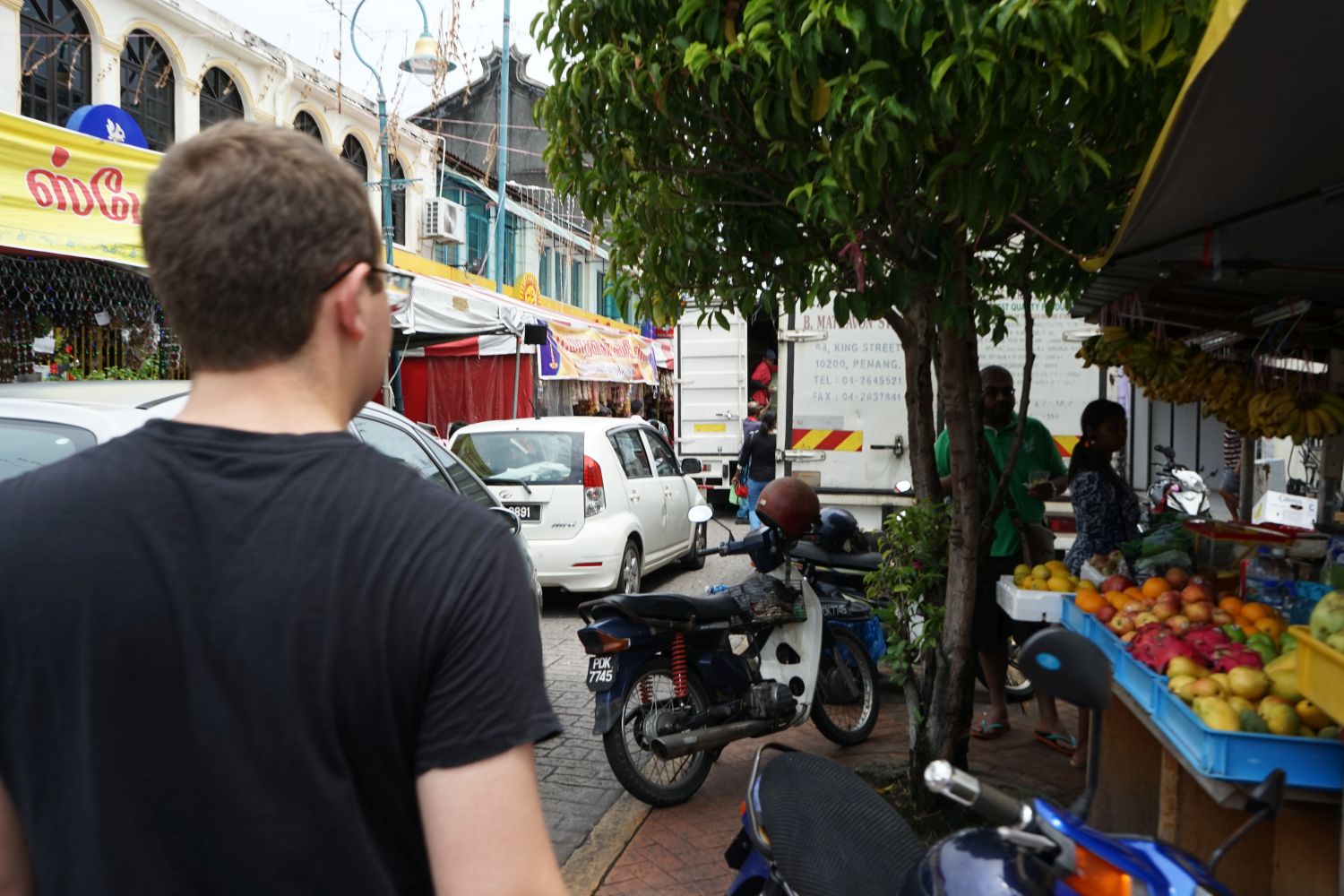 Nach einem eher uninteressanten Mittwoch an dem wir lediglich versuchten festzustellen wer von uns am meisten faulenzen kann wurden noch schnell die Zugtickets nach Kuala Lumpur – das nächste Ziel unserer Reise –  gekauft. Da der indische Nationalfeiertag vor der Tür stand, gab es dementsprechend eine Völkerwanderung der indischen Bewohner Malaysias nach KL, wodurch wir nur noch Tickets für den Zug um 5:30 Uhr morgens ergattern konnten. Völlig zerknautscht verließen wir also gegen 4:30 Uhr schweren Herzens unsere Luxus Herberge. Der nächstgelegene Bahnhof war in Butterworth, etwa eine Stunde mit dem Auto entfernt. Scheinbar war die Dame im Hotel anderer Meinung und überzeugte uns ein späteres Taxi zu nehmen, weshalb unser Taxifahrer gezwungener Maßen durchgehend 40 km/h zu schnell fahren musste um uns rechtzeitig am Bahnhof abzuliefern. Nach dieser rasanten Fahrt war dann wieder Schlafen im klimatisierten Schnellzug – schnell bedeutet hier, dass er schneller als 50km/h fahren kann und ist mit einem IC/ICE nicht wirklich vergleichbar – angesagt, zumindest für Max und Philip. Nach gut vier Stunden Fahrt und gefühlten 1000 Stopps in Regenwalddörfern kamen wir ohne weitere Probleme vormittags in Kuala Lumpur am Bahnhof an von wo es direkt ins Hotel ging. Dieses liegt im chinesischen Stadtviertel und hat einen etwa 1,5 m breiten Eingangsbereich den man leicht übersehen kann. Vor unserer Haustür können alle großen Markennamen erworben werden, ob Handtaschen von Michael Kors, Uhren von Rolex oder Unterbuchsen von Calvin Klein. Alles wird einem angepriesen sobald man den Markt betritt. Gegen Abend vergrößert sich der Markt auch schlagartig, da zwischen den Marktständen noch eine weitere Reihe Marktstände aufgebaut wird. Eine groß angelegte Überdachung sichert dem Markt auch permanente Besucher, da es in der Regenzeit eigentlich jeden Tag regnet. Der Rest des Tages verlief nach dem Mittagessen und etwas schlendern durch das Treiben ohne weitere Vorkommnisse.